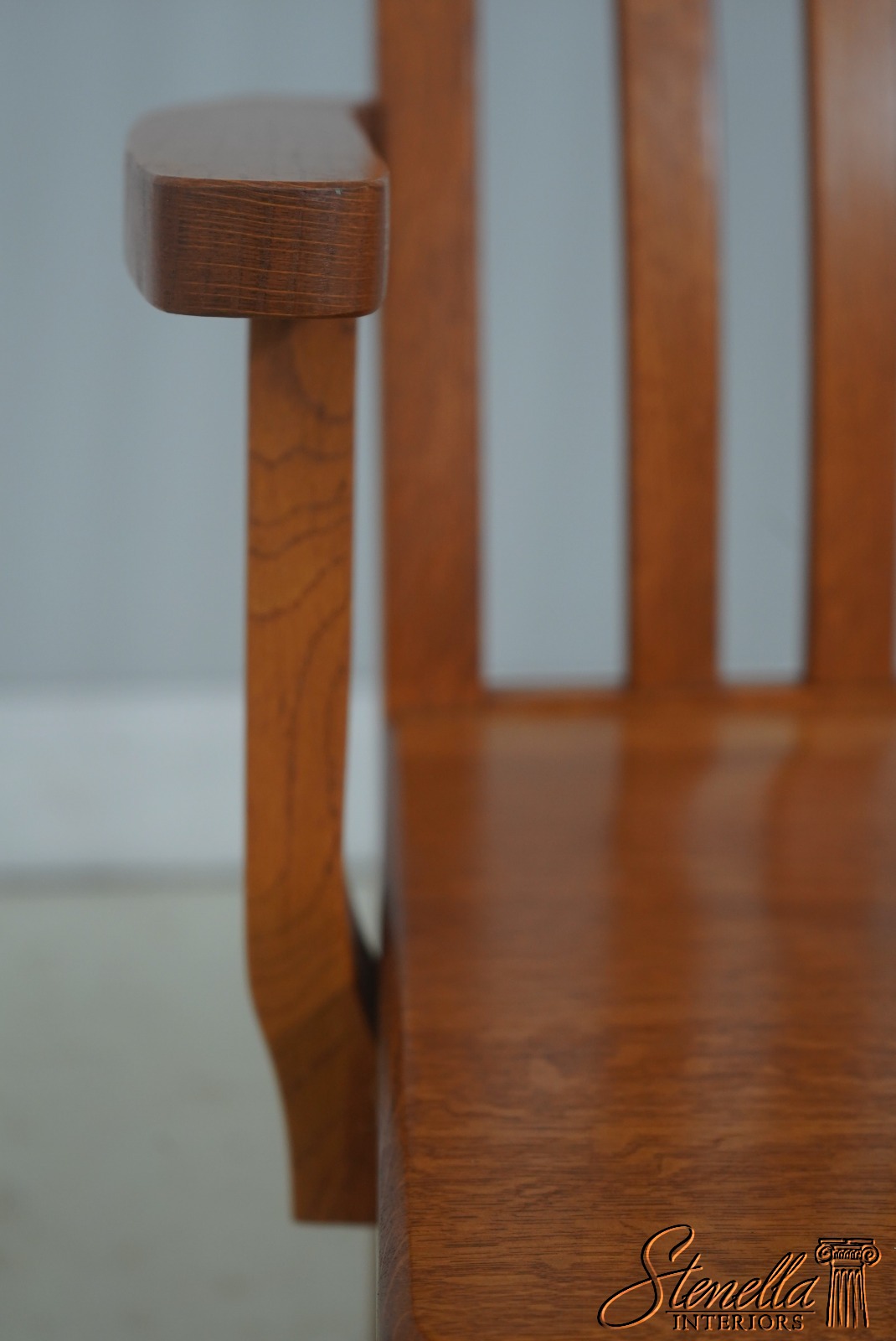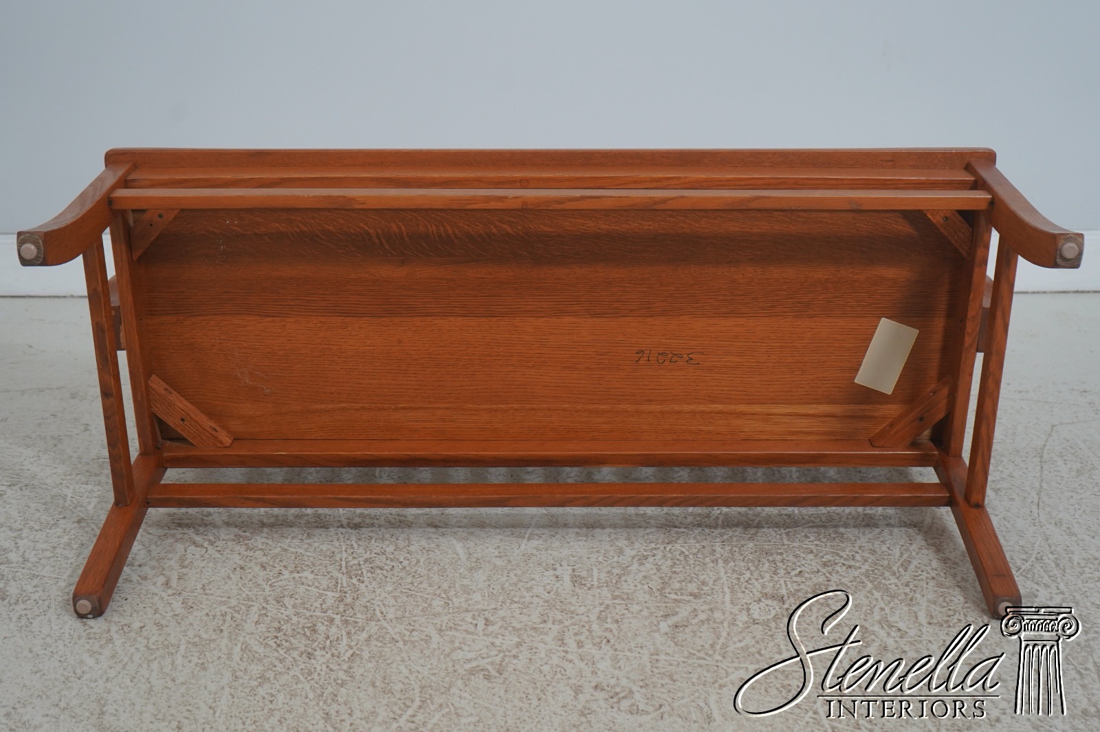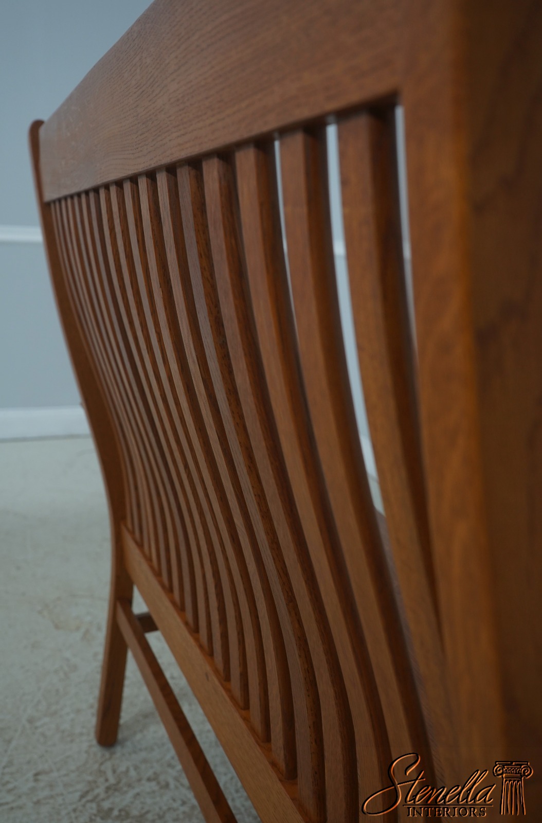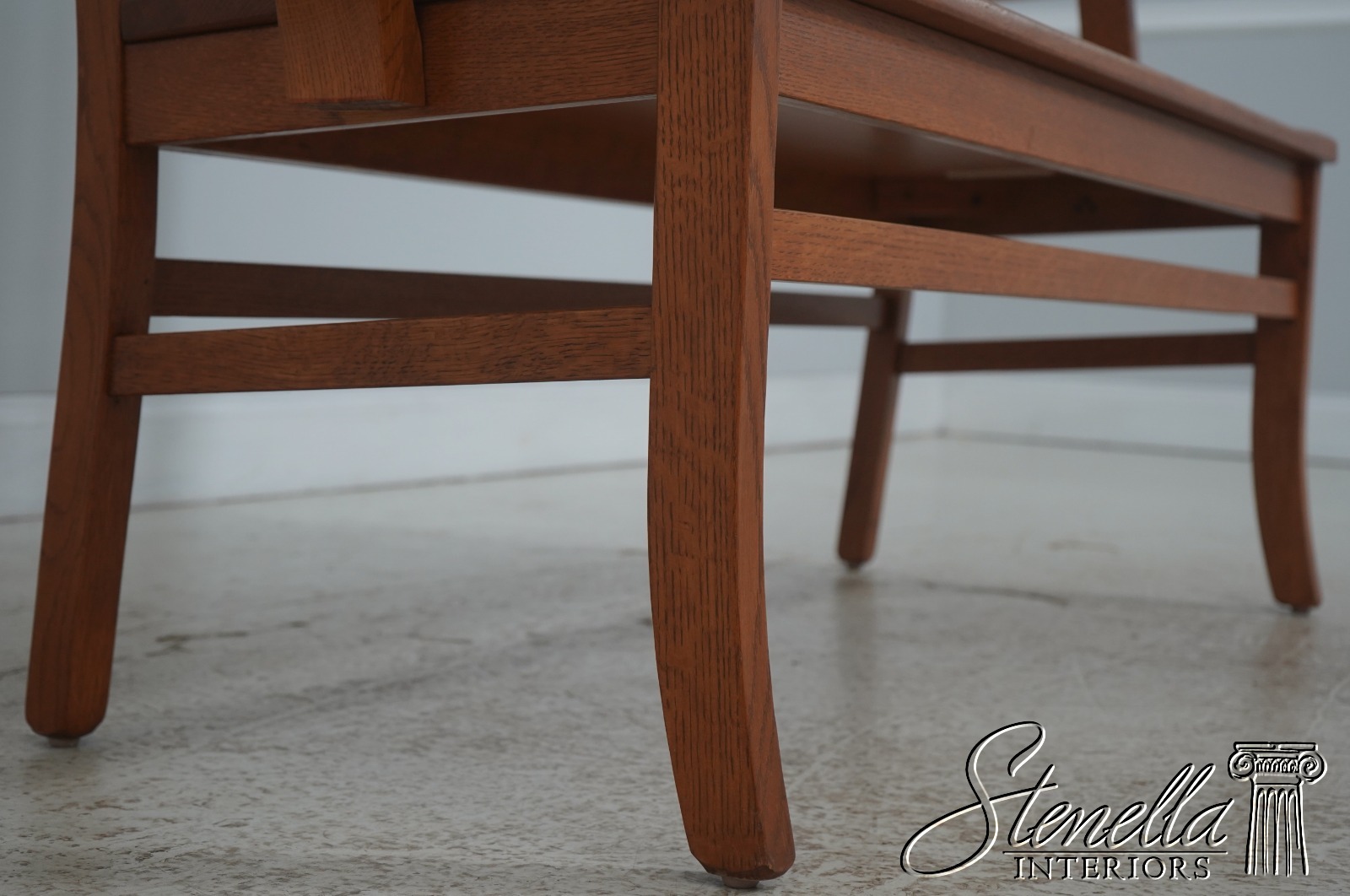 72209: Arts And Crafts Style Solid Oak Slat Back Bench