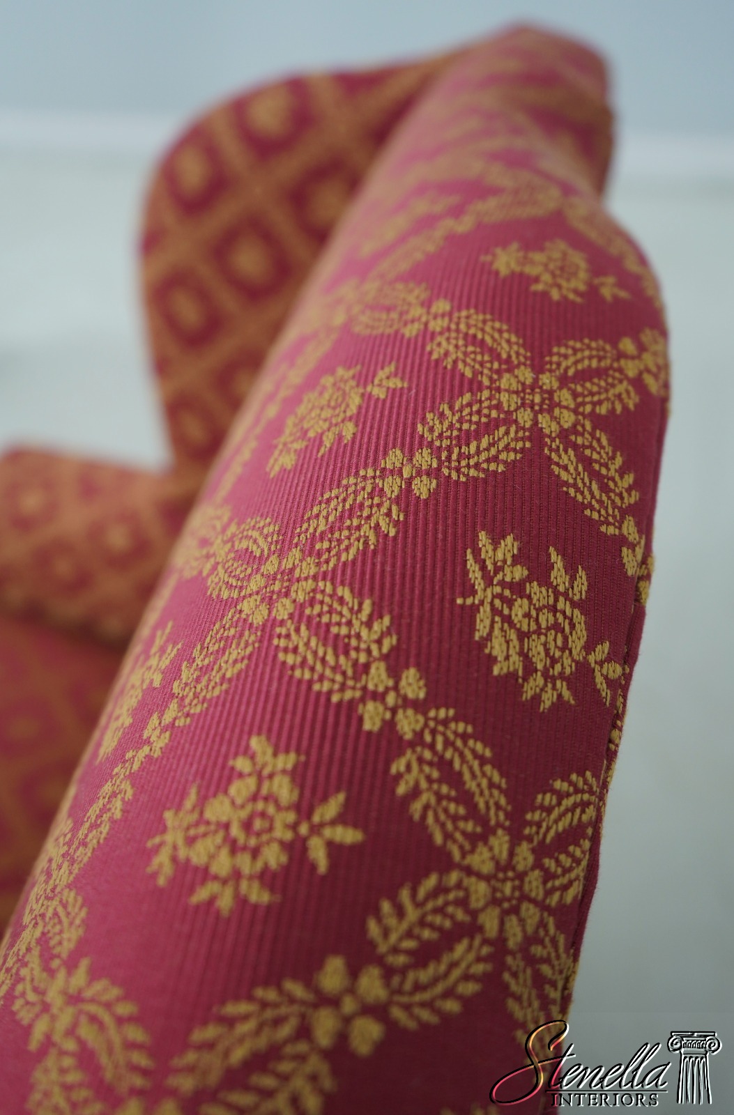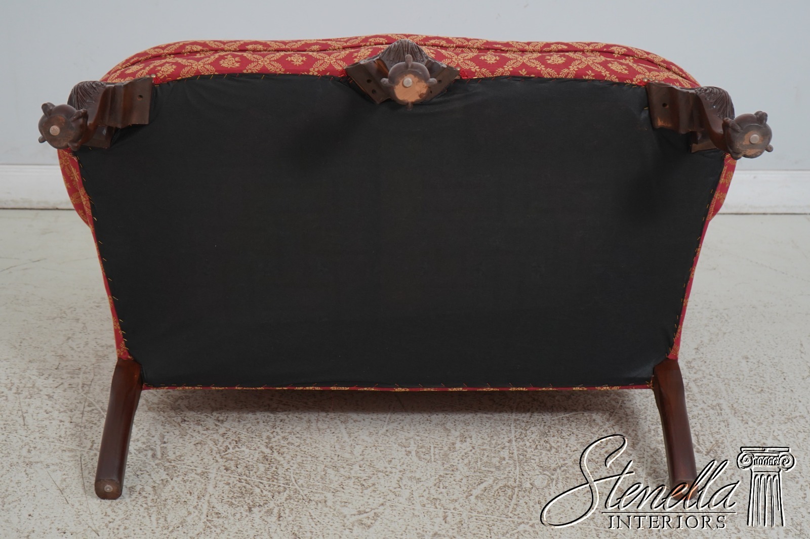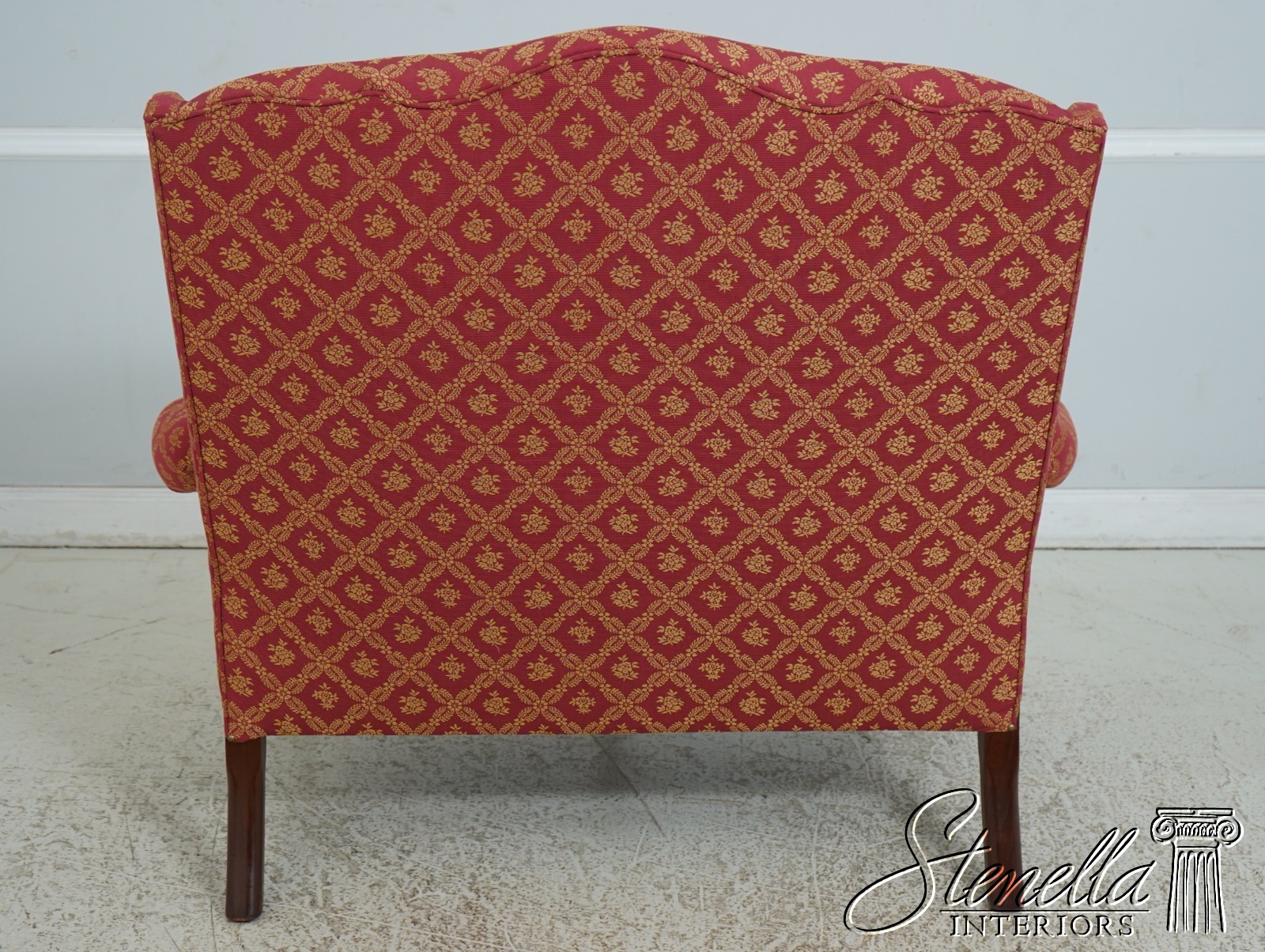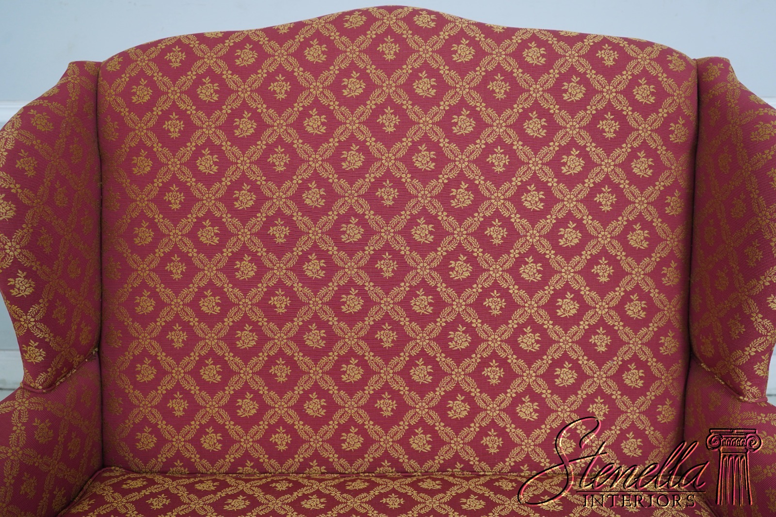 Details: 1 of 4 Made Mahogany Ball & Claw Feet Fine Carved Details High Quality Construction Shapely Curved Frame Frame Was Unfinished & Never Upholstered Previously Chippendale Style Traditional Style Tack Head Trim Brand New Professionally Reupholstered In Kravet Fabric Un-Marked As To Manufacture - Frame Is Hand Signed Under Upholstery Double Wing Back Settee Offered @ Fraction Original Retail Cost