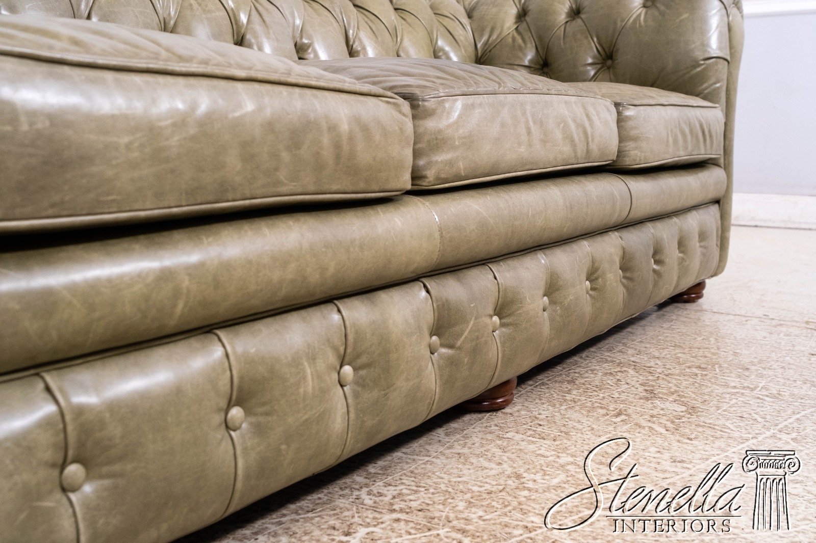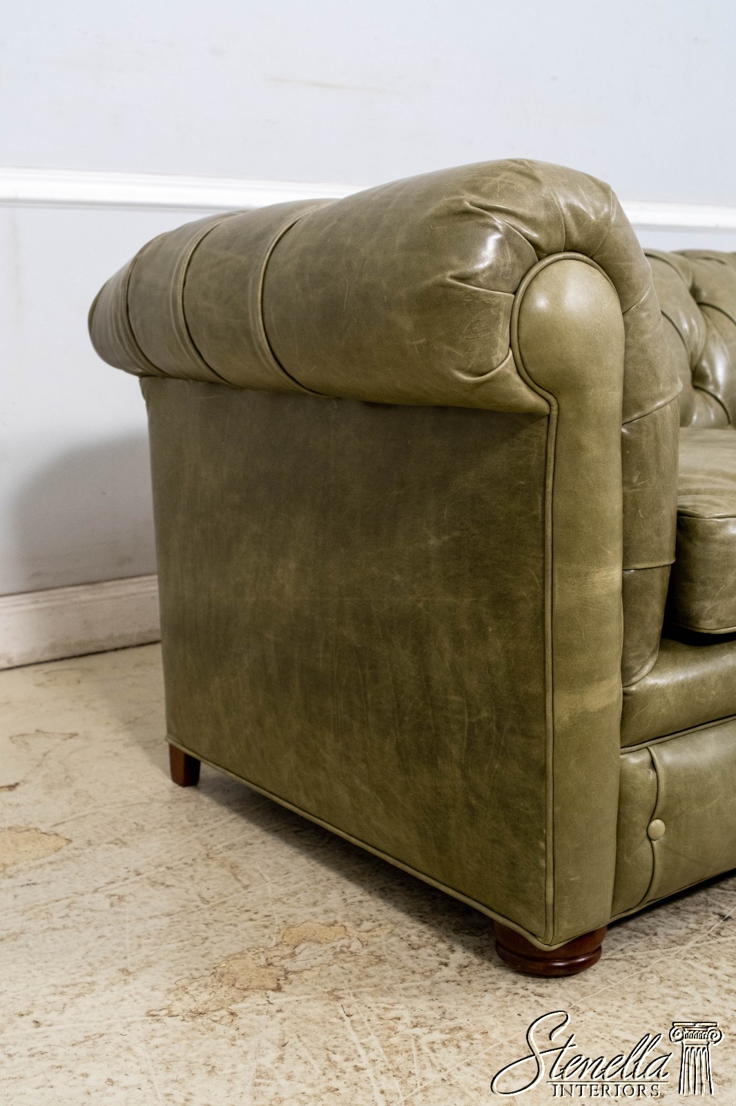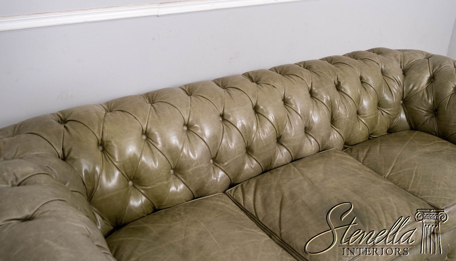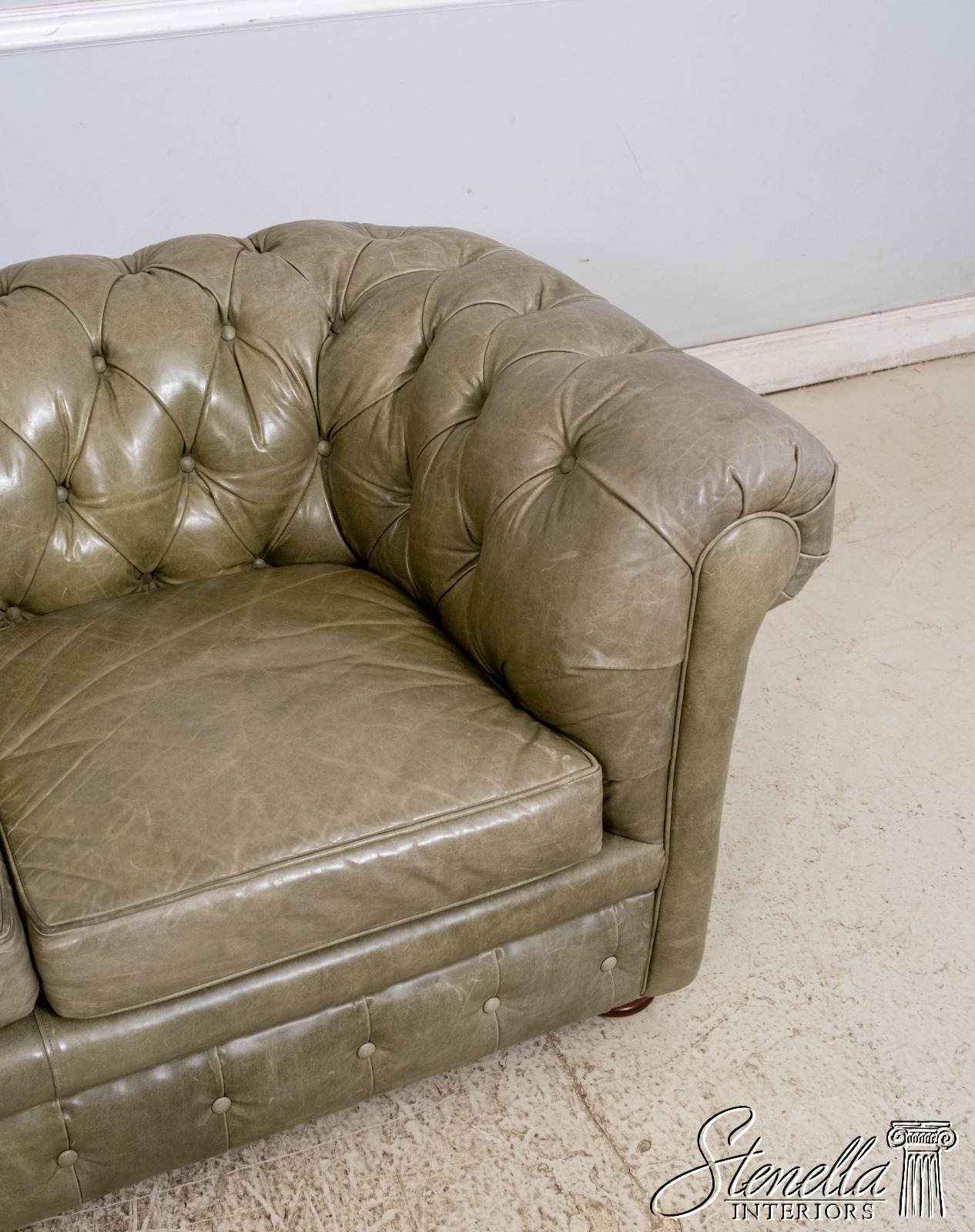 L70620: Green Leather Tufted Back Chesterfield Sofa