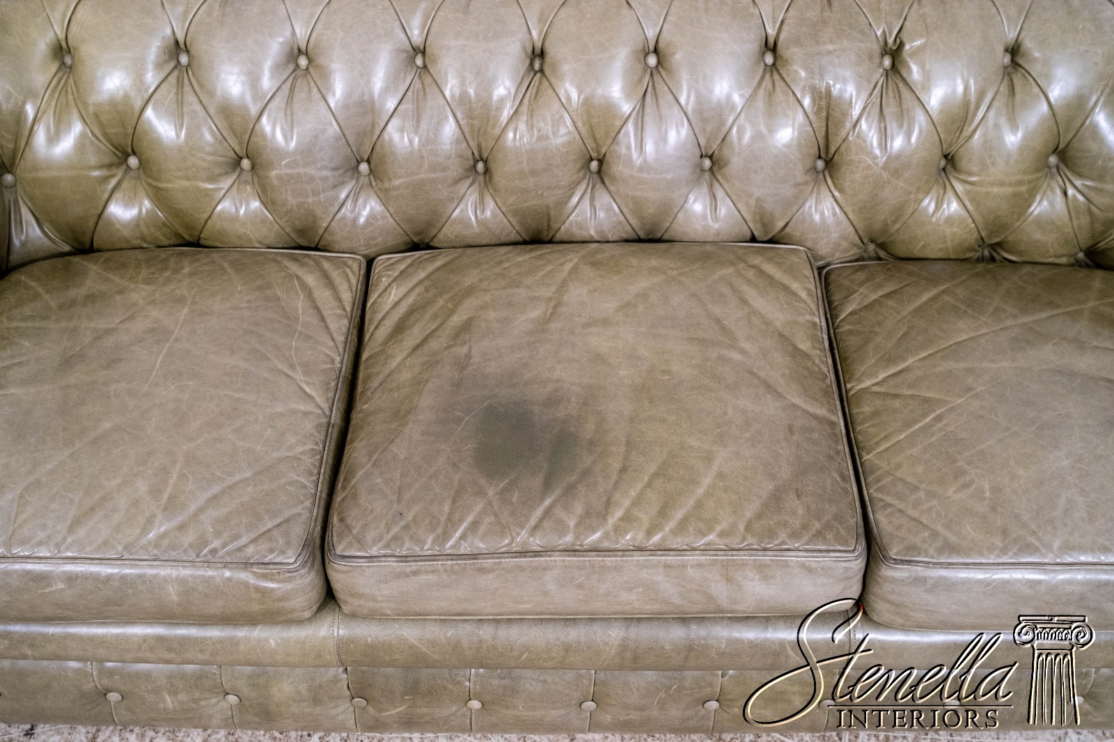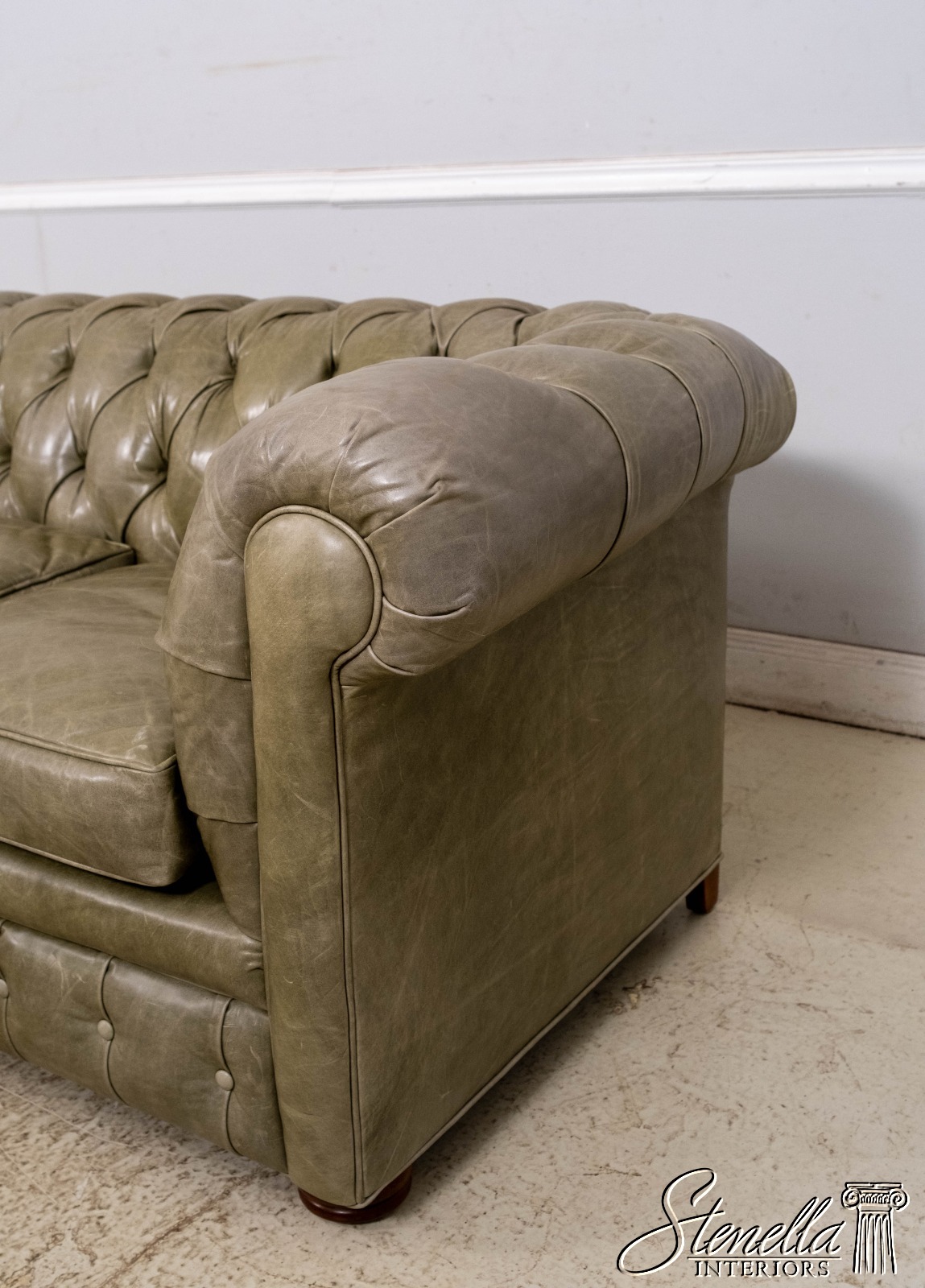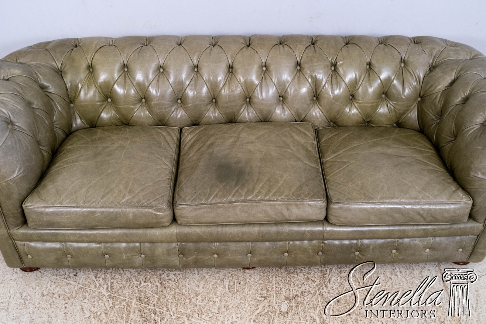 L70620: Green Leather Tufted Back Chesterfield Sofa