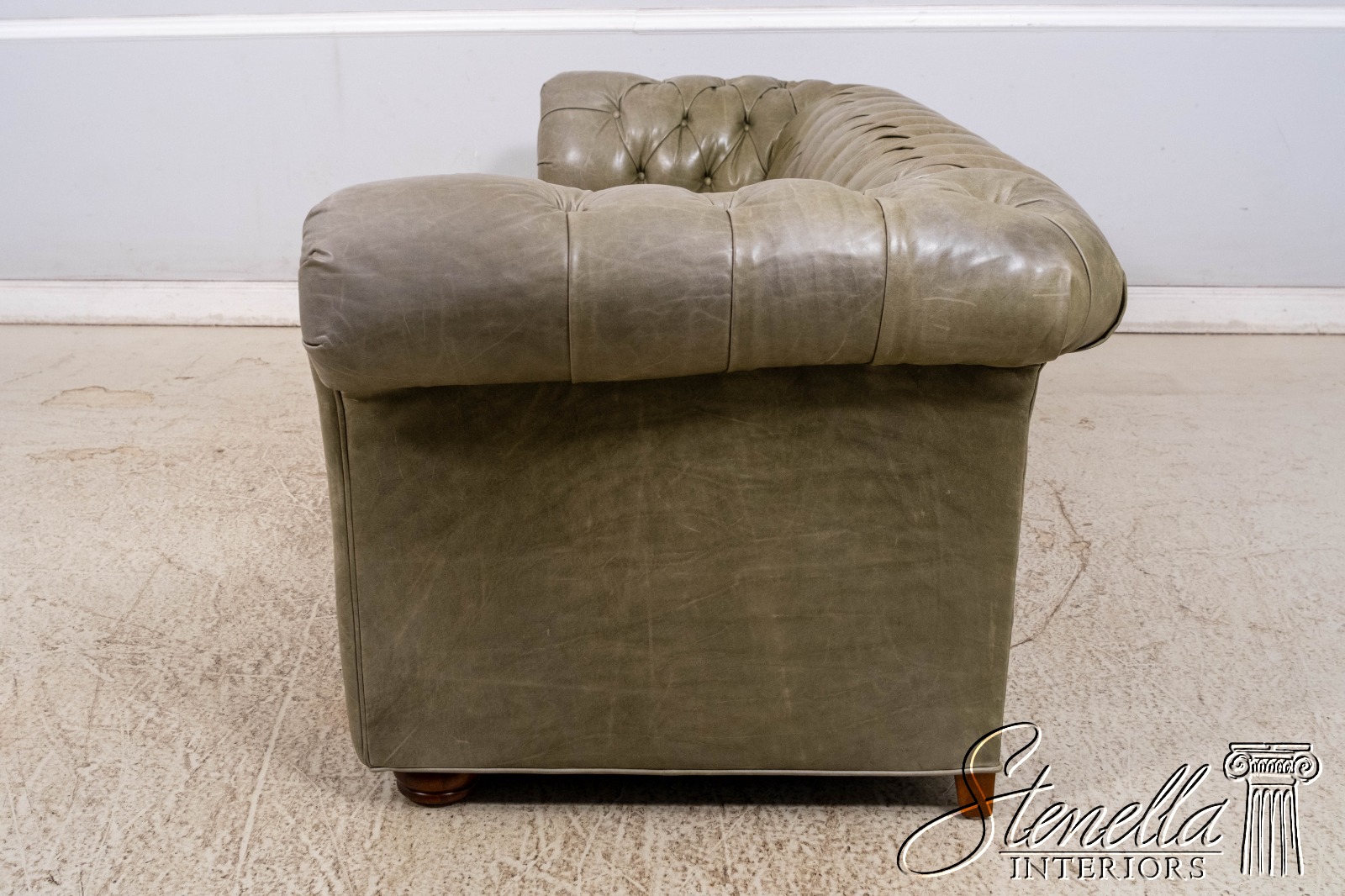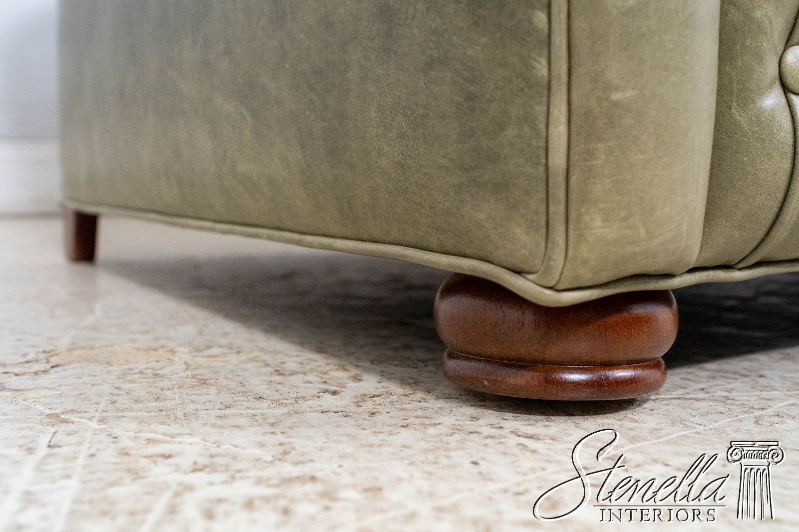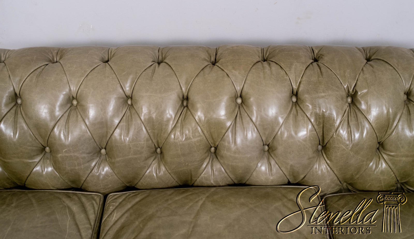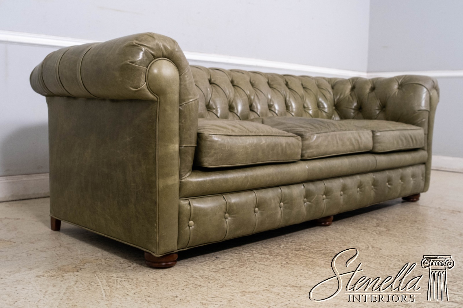 L70620: Green Leather Tufted Back Chesterfield Sofa