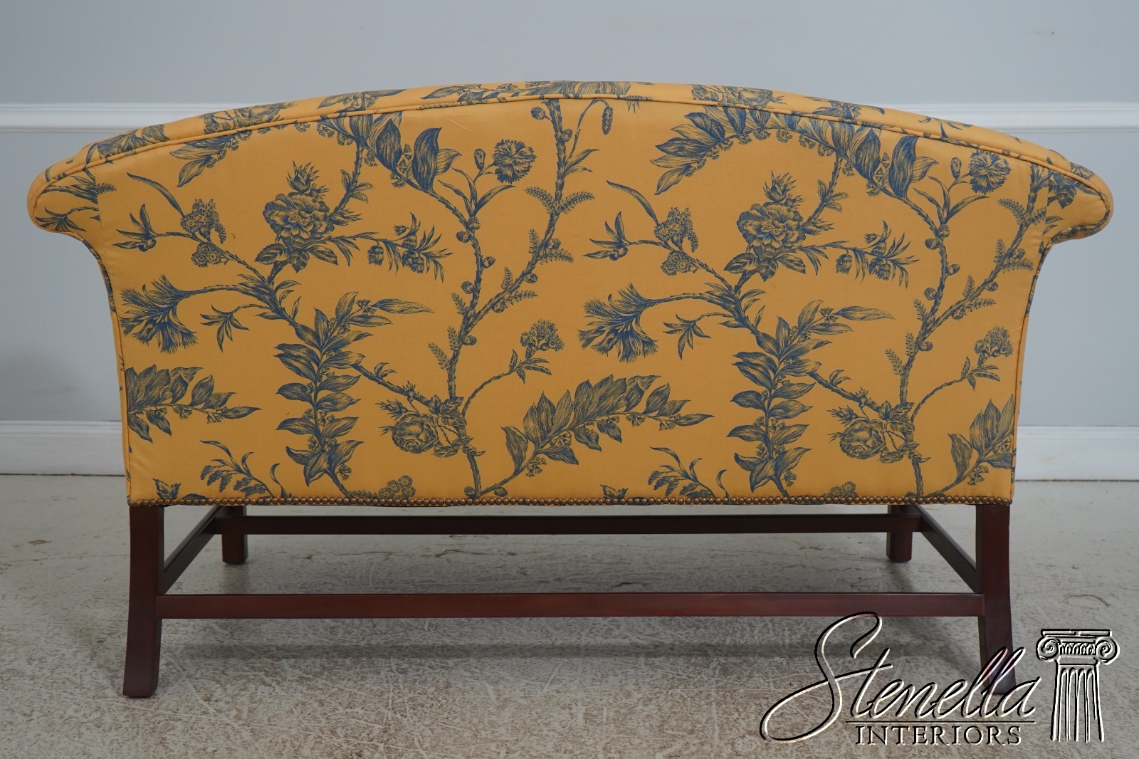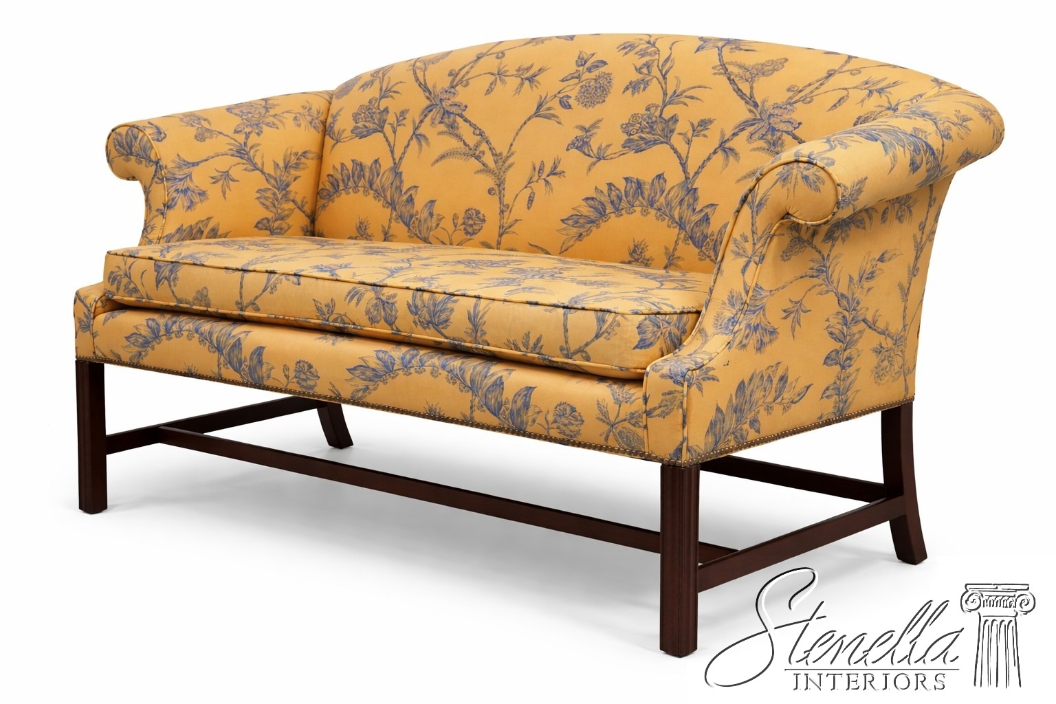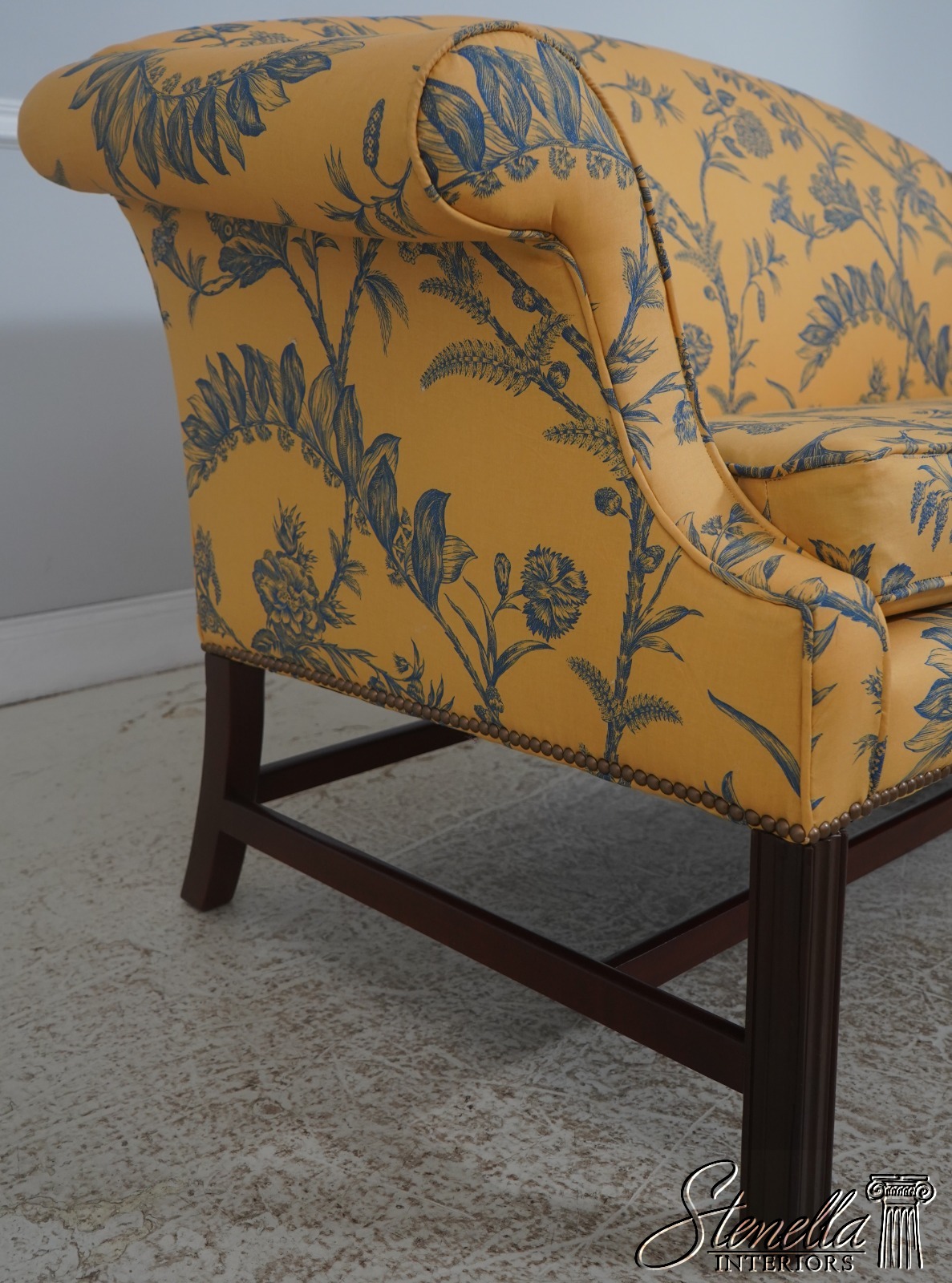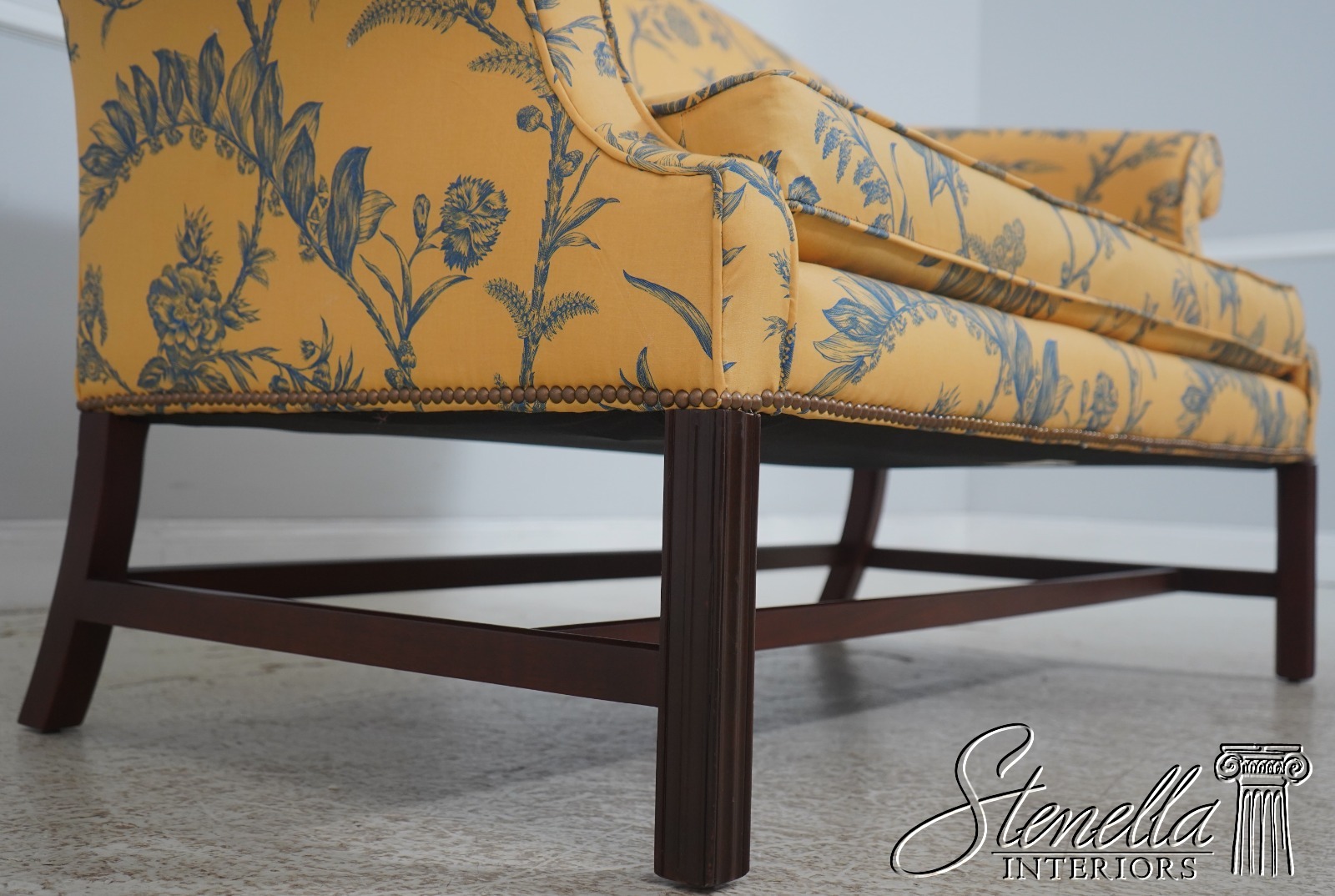 Details: Colonial Williamsburg High Quality Construction 18 C. Design Chippendale Style Traditional Style Stretcher Base Frame Tack Head Trim Rolled Arms Professionally Reupholstered In Quality Colonial Williamsburg Upholstery Camel Back Offered @ Fraction Original Retail Cost