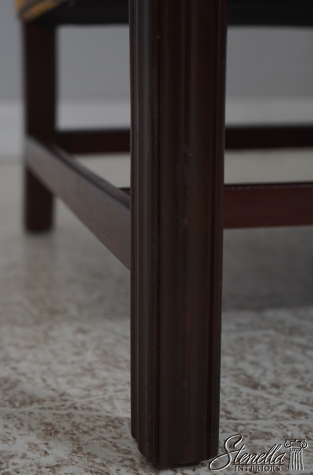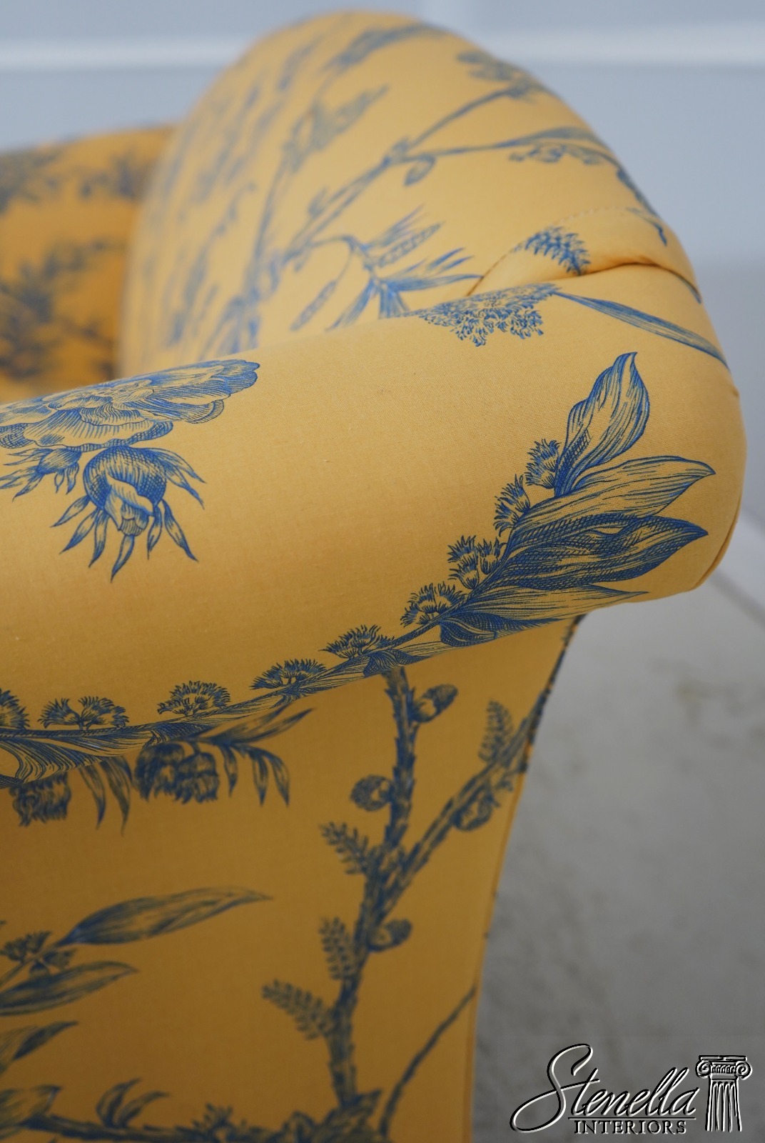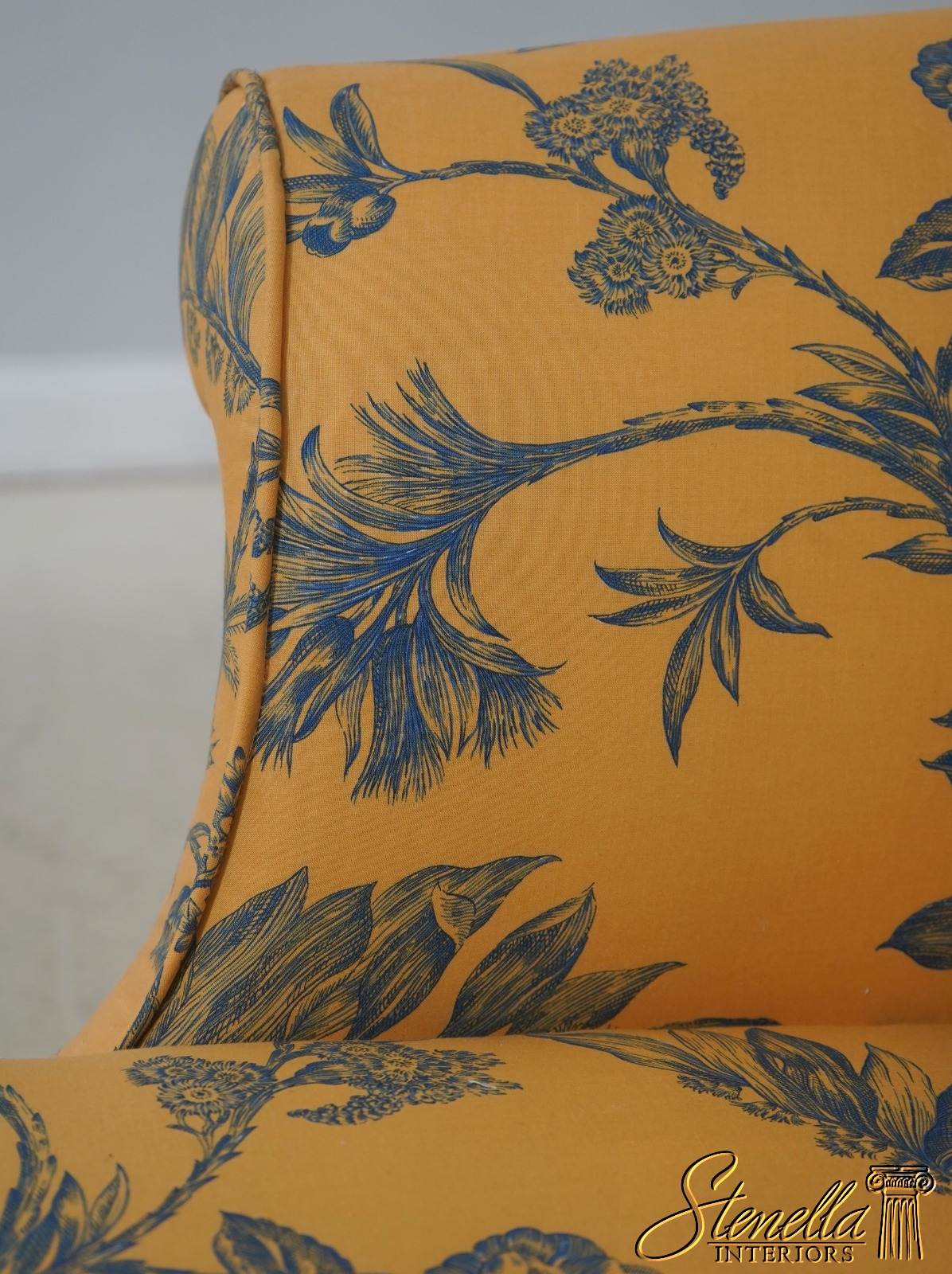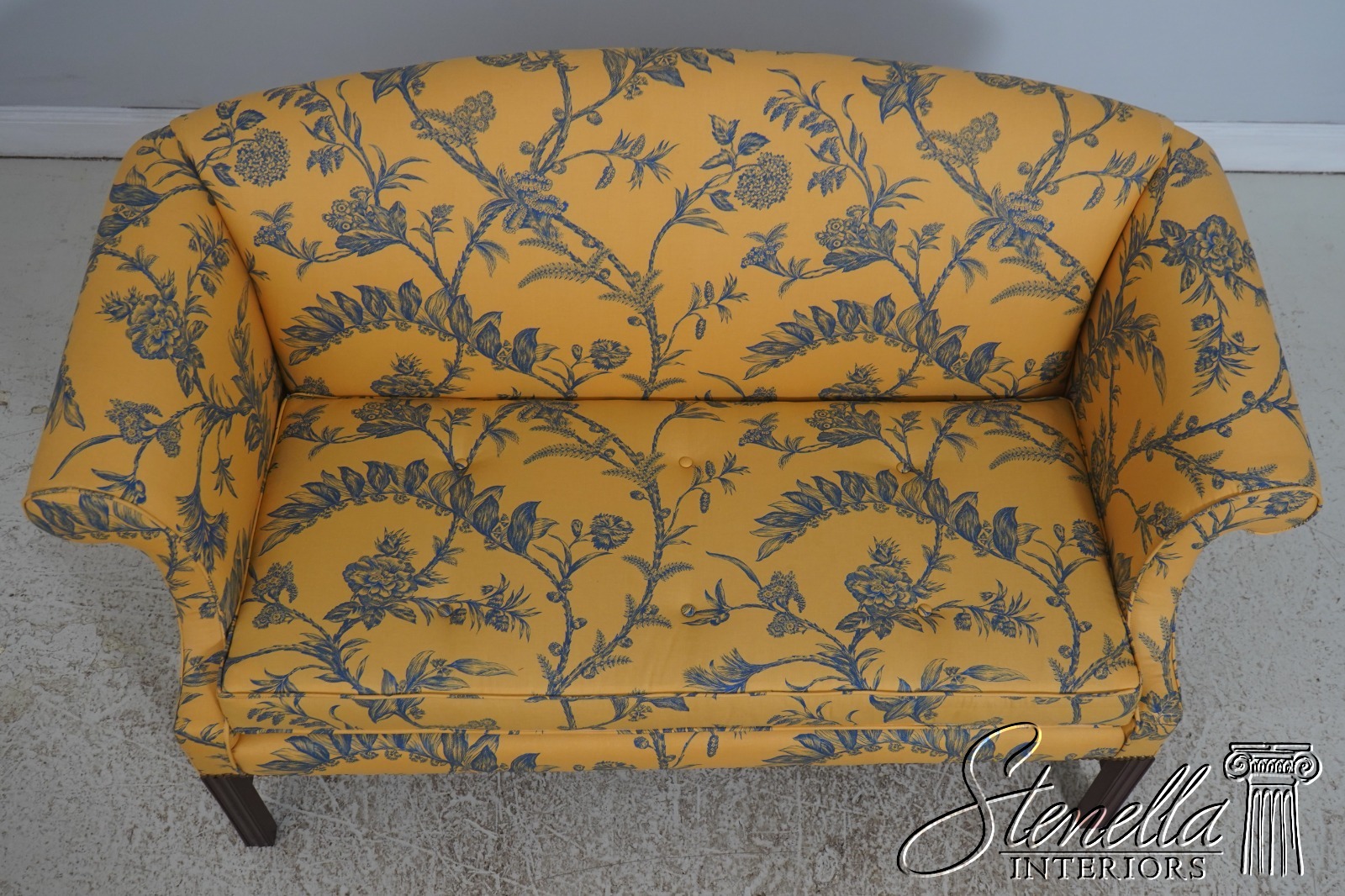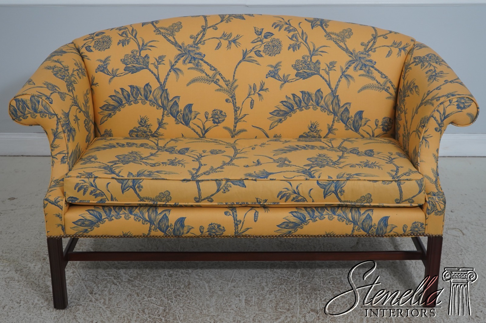 Details: Colonial Williamsburg High Quality Construction 18 C. Design Chippendale Style Traditional Style Stretcher Base Frame Tack Head Trim Rolled Arms Professionally Reupholstered In Quality Colonial Williamsburg Upholstery Camel Back Offered @ Fraction Original Retail Cost