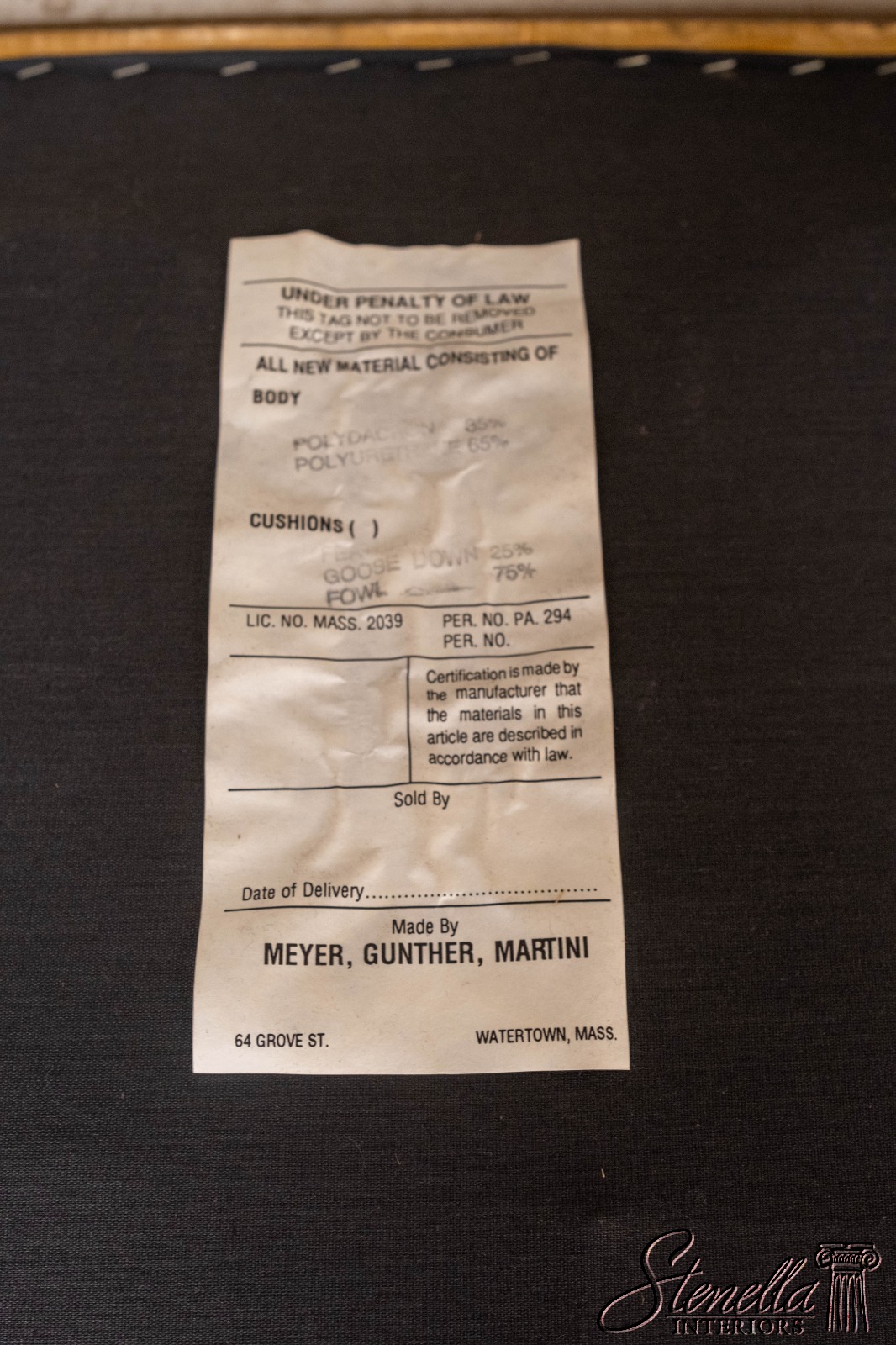 Sometimes upholstered items may show some wear or minor use. Or you may want to have recovered in different upholstery to match your decor’. Please feel free to contact us for information on having this or any of our items professionally re-upholstered in the fabric of your choice. We are able to make recommendations.