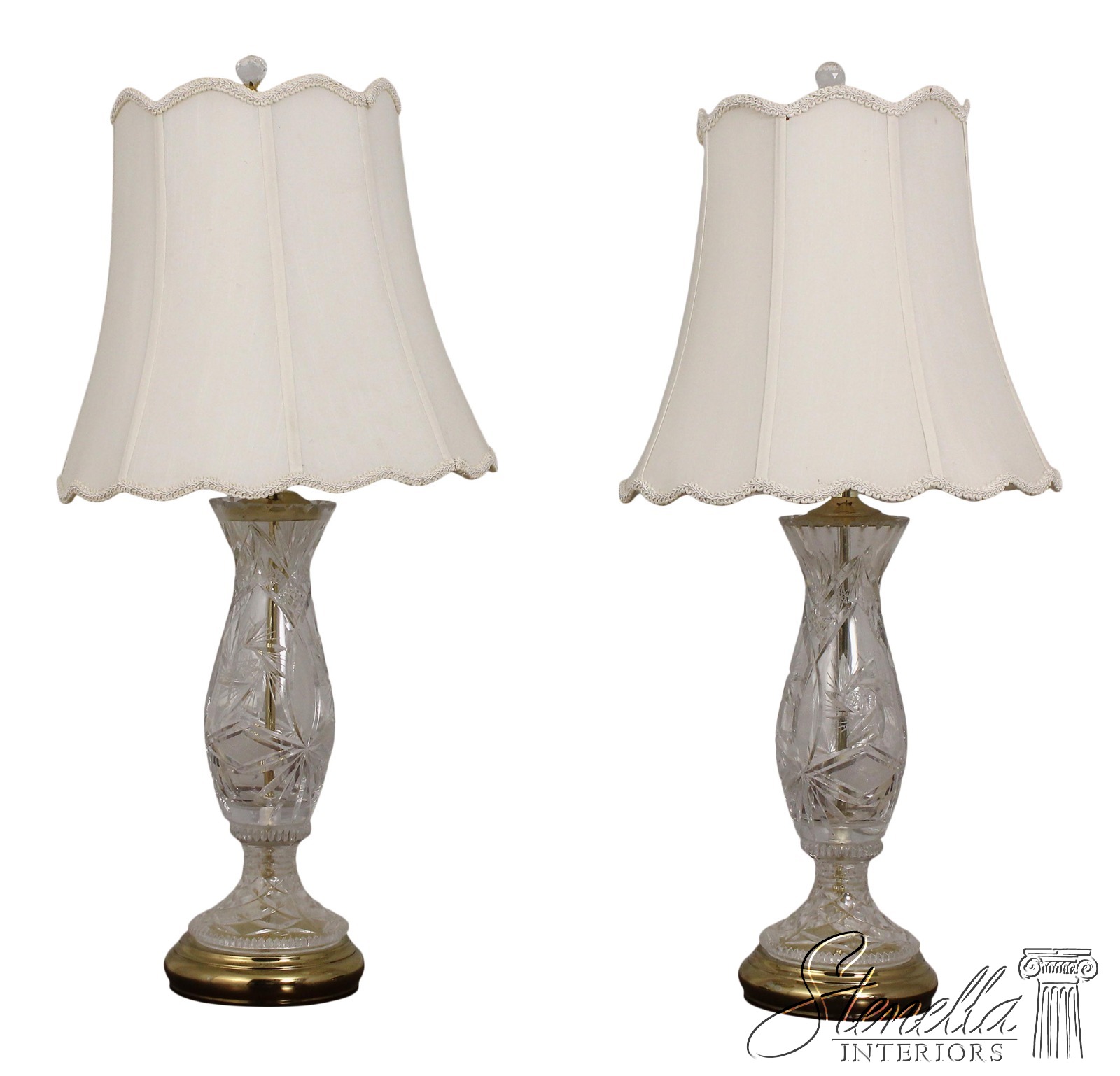 LF56252EC: Pair Cut Crystal Etched Table Lamps