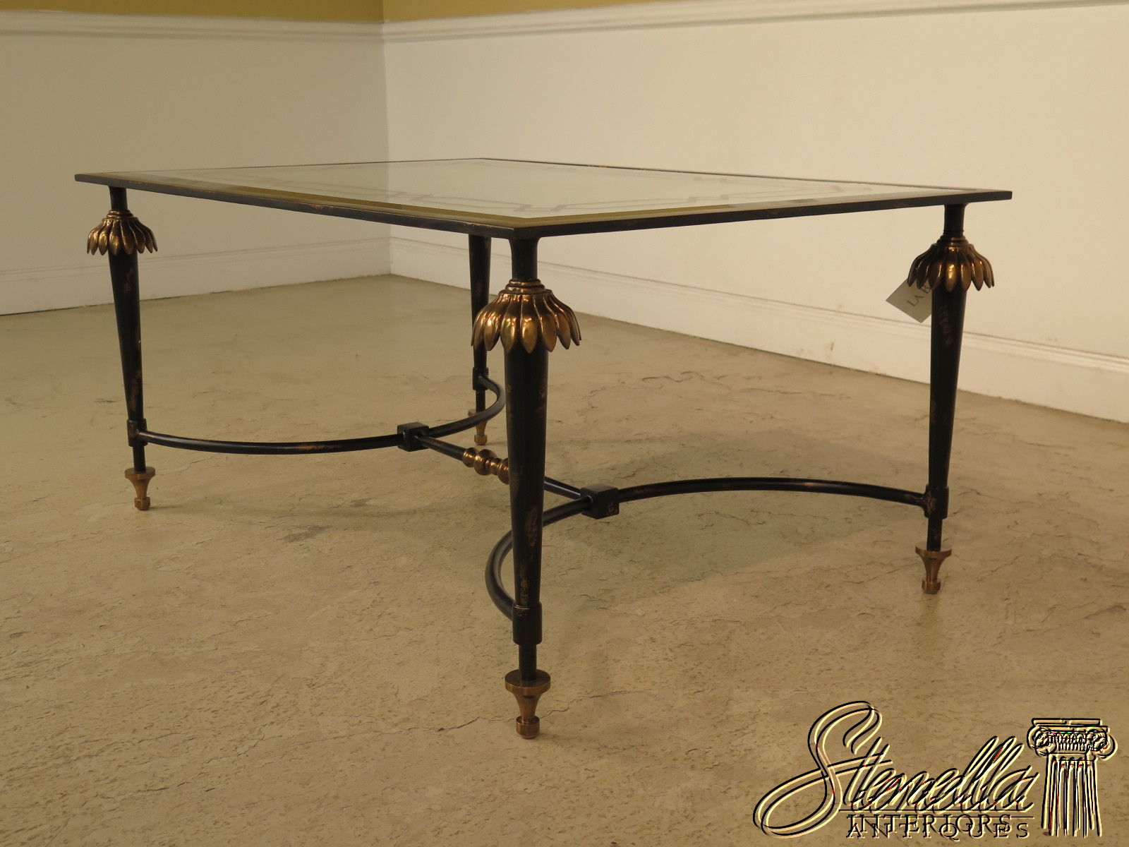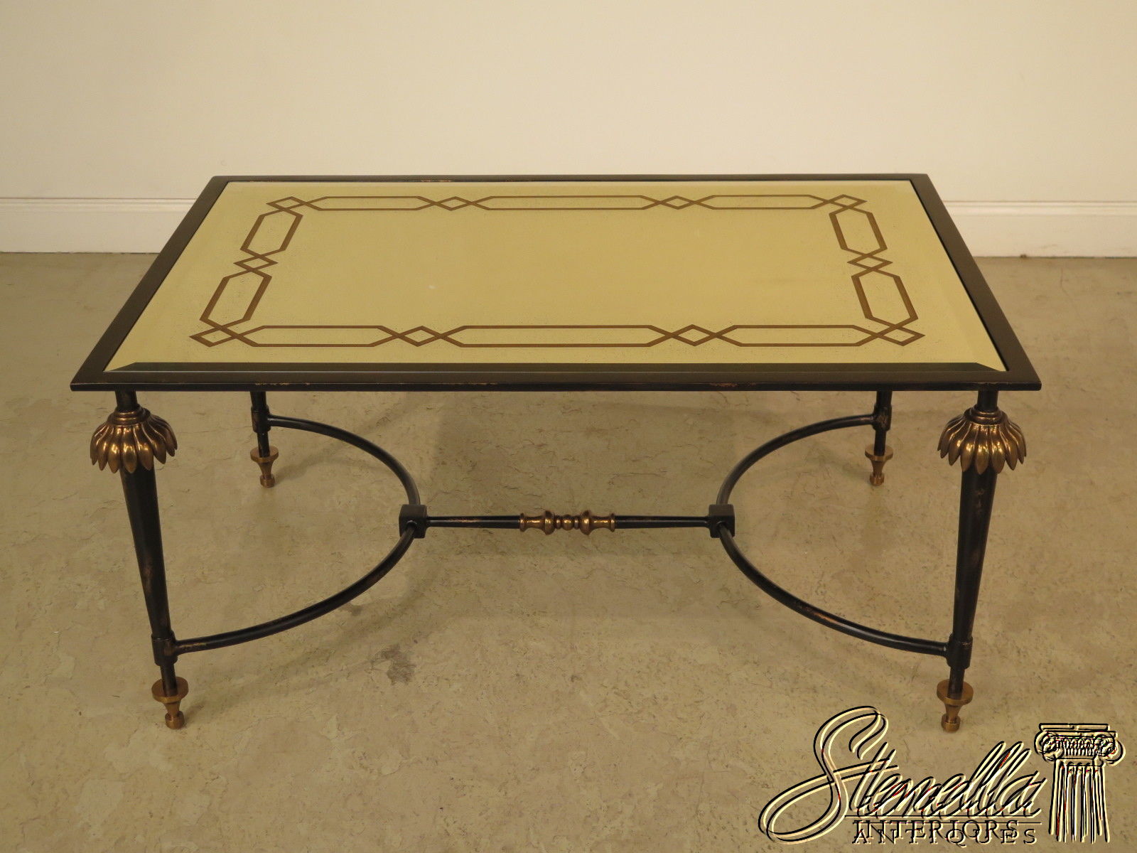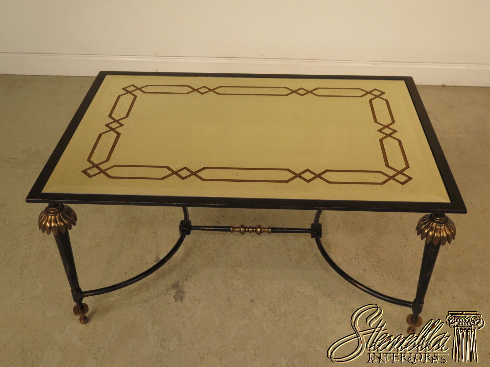 L37182: LaBARGE Black Iron Reverse Painted Glass Top Coffee Table LB-LT7320 ~ New
