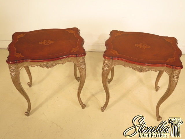 L38877/38878: Pair French Louis XIV Paint Decorated Occasional Tables ~ NEW