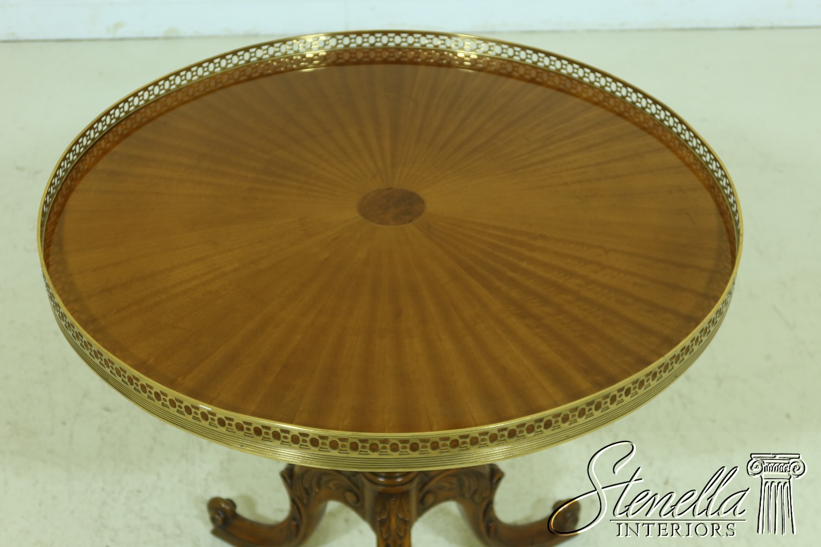 Details: Fine Carved Details High Quality Construction Nice Scrolled Legs English Style Gorgeous High Sheen Satinwood Top Brass Gallery Top Offered @ Fraction Original Retail Cost