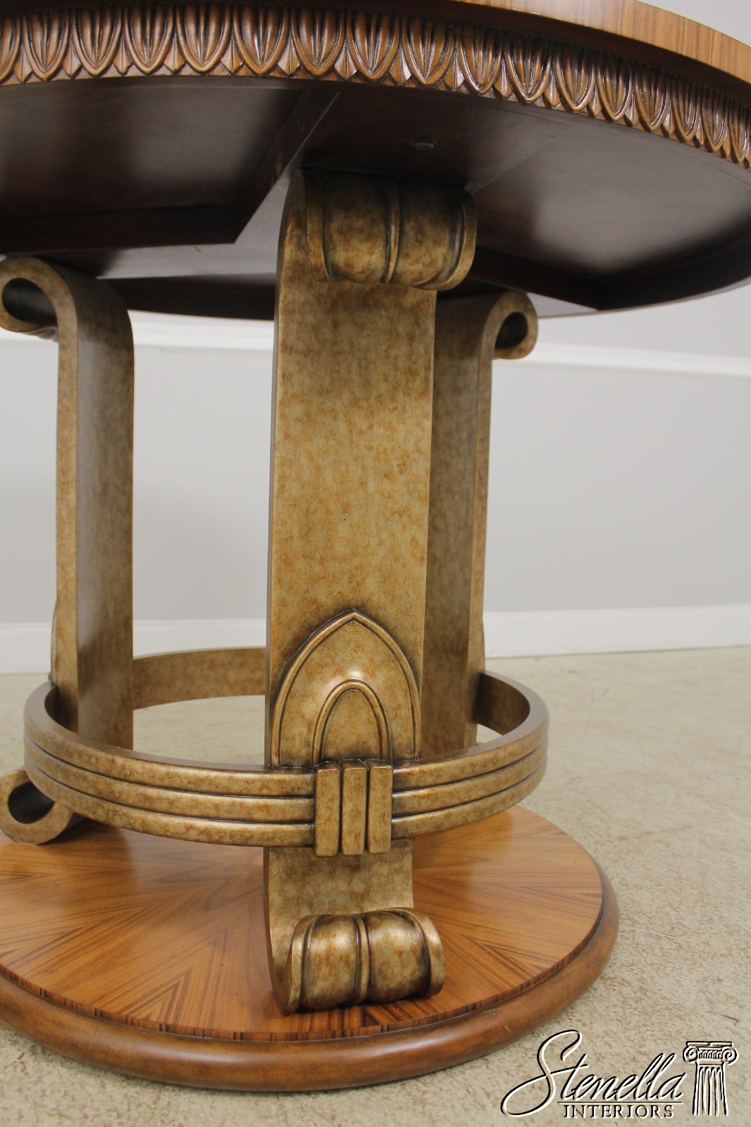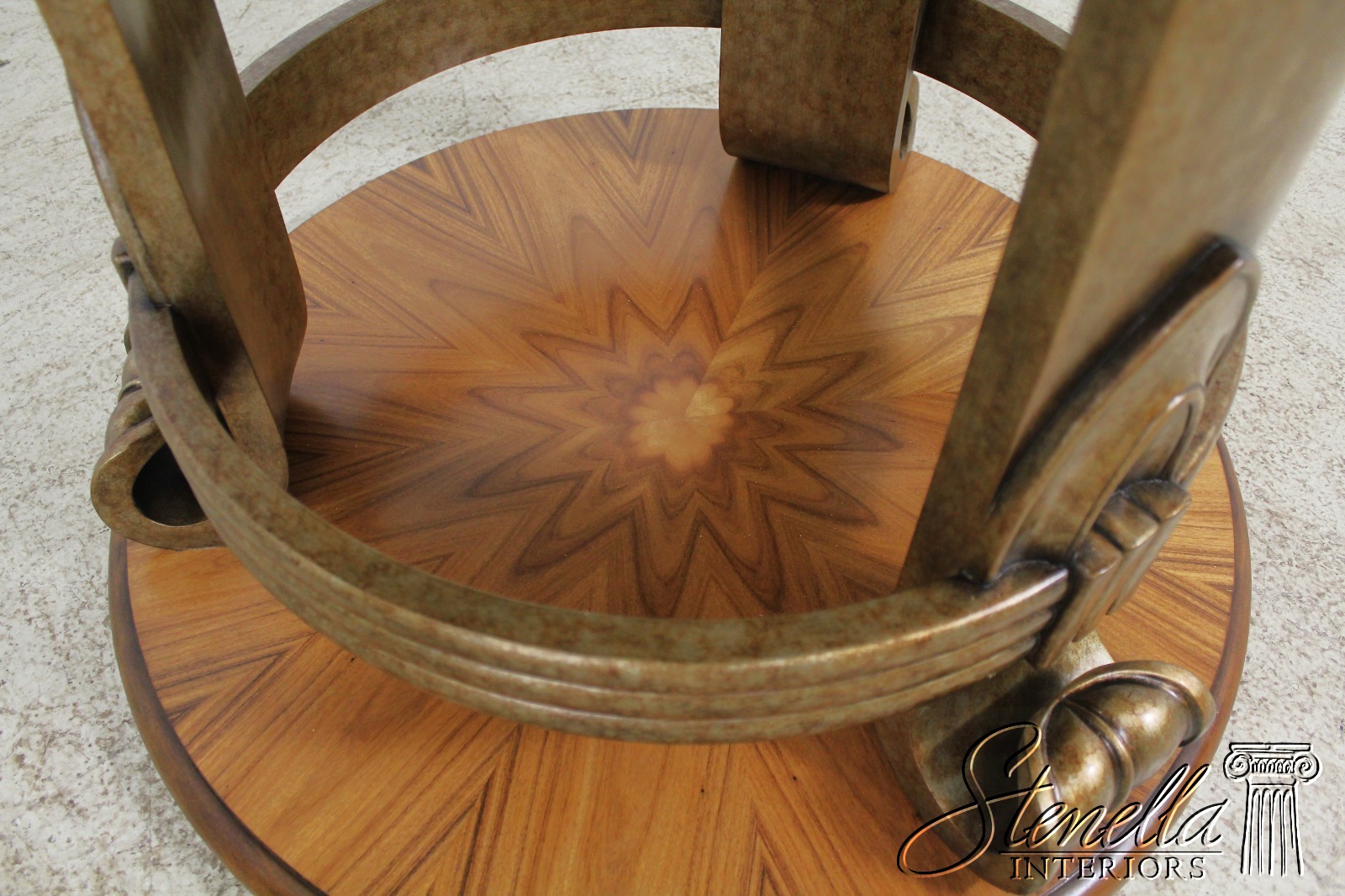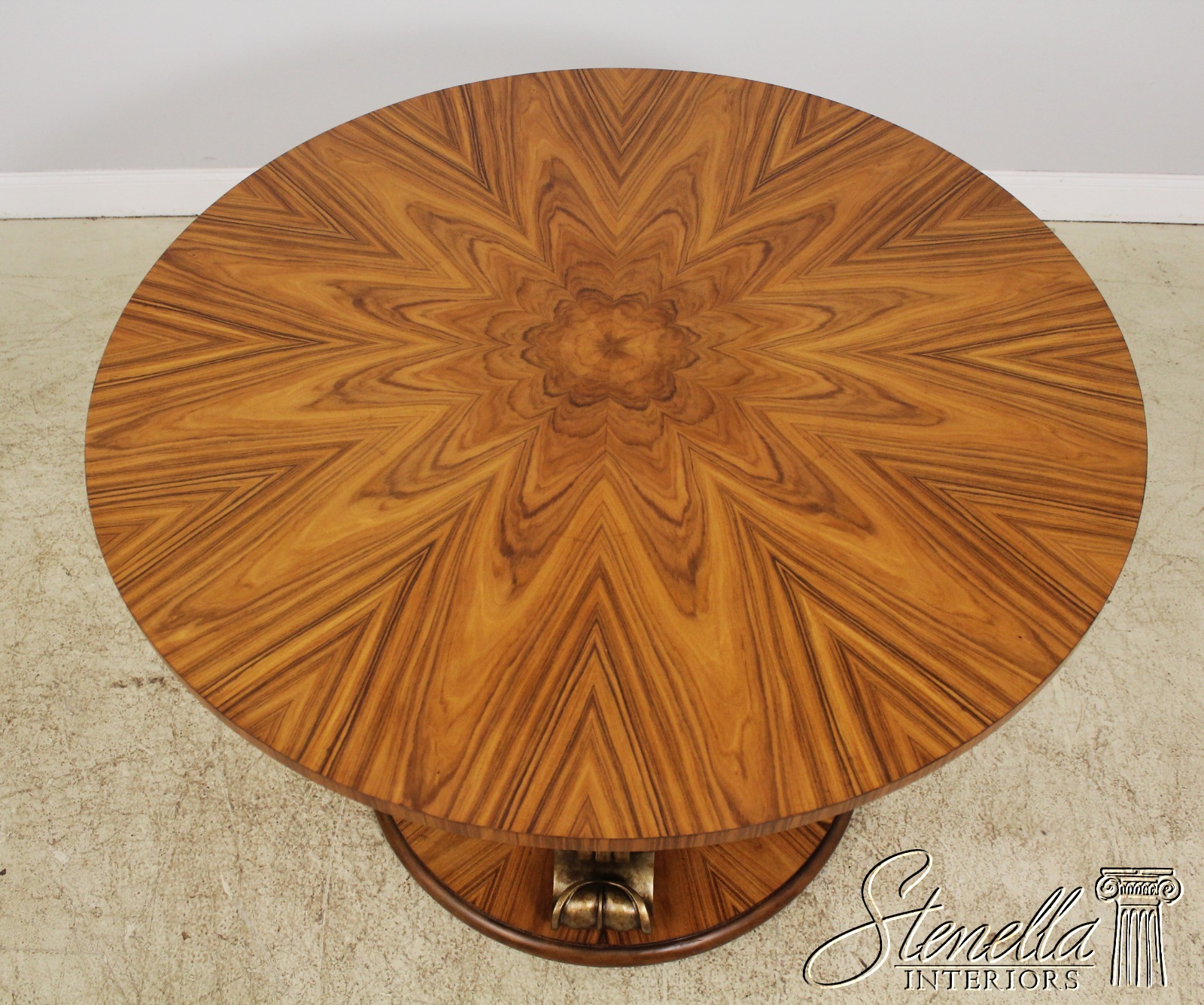 Details: High Quality Construction Silver/Gold Leaf Finish Base Gorgeous Matched Grain Walnut Top Biedermeier Design Un-Marked As To Manufacture Offered @ Fraction Original Retail Cost