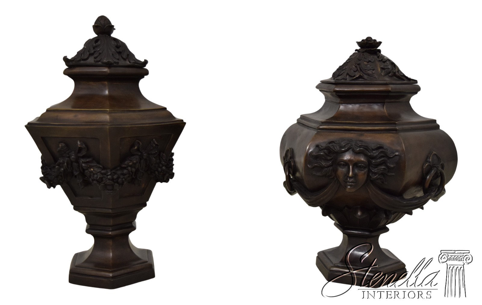 LF64075EC: Pair Complimenting Bronze Classical Style Lidded Vases