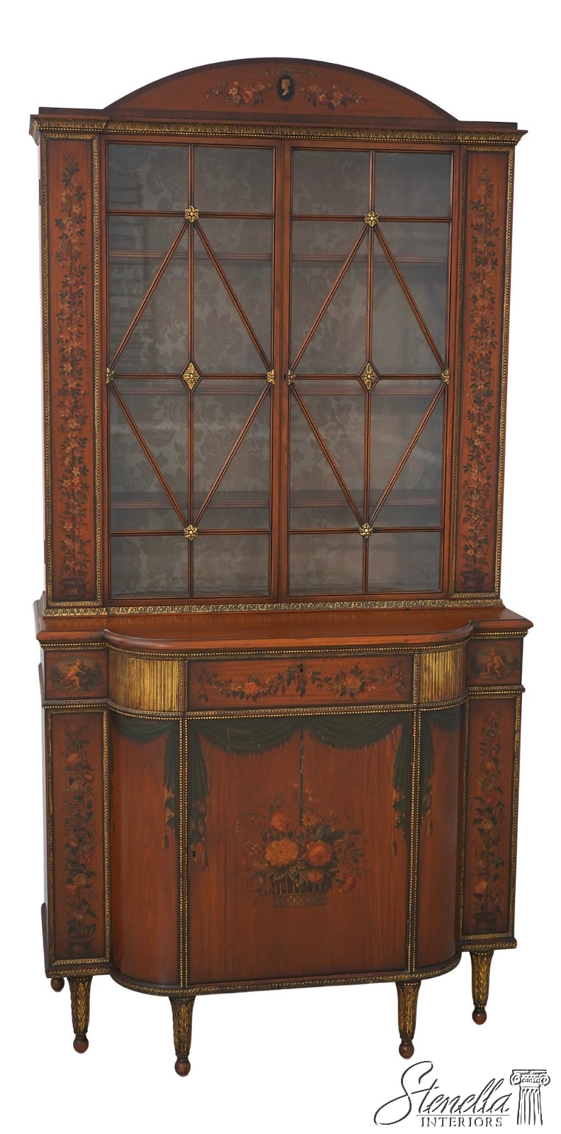L69183: ROBERT IRWIN Attributed Adams Style Paint Decorated Satinwood Curio China Cabinet