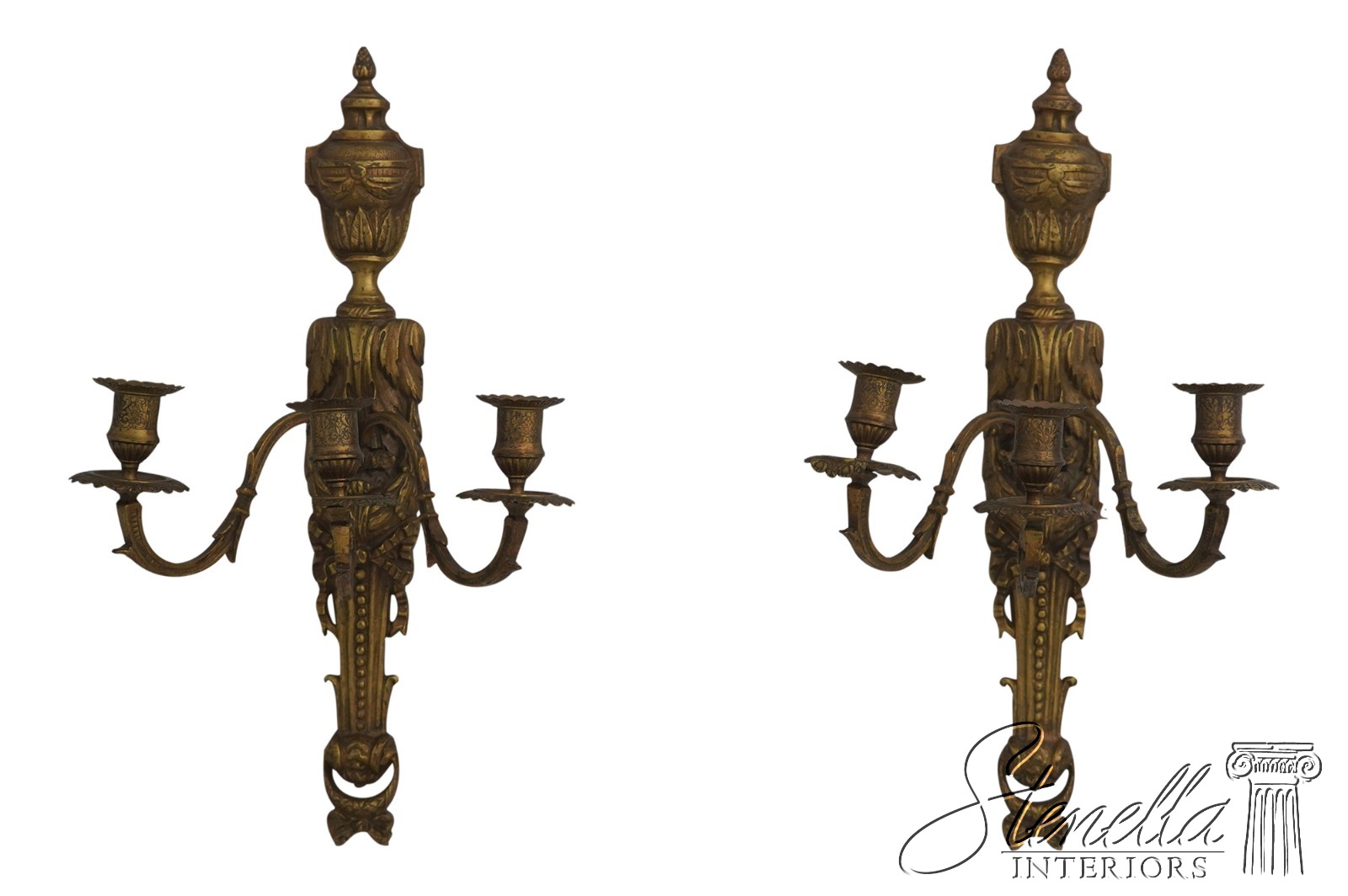F69410: Pair Of Bronze 3 Candle Wall Sconces Louis XV Style