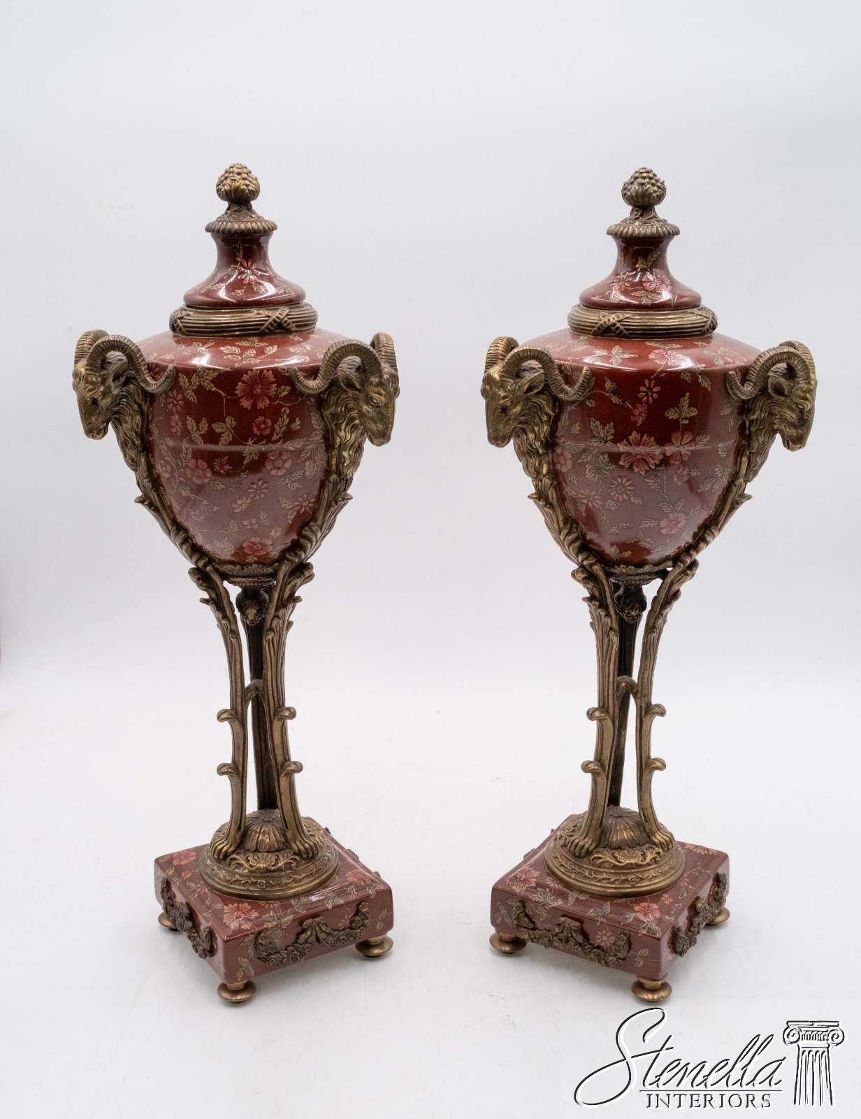 LF69607: Pair Of Castilian Bronze & Porcelain Lidded Urns