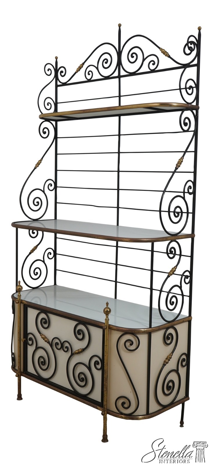 F69836: Vintage Iron & Brass Bakers Rack w. Milk Glass Shelves