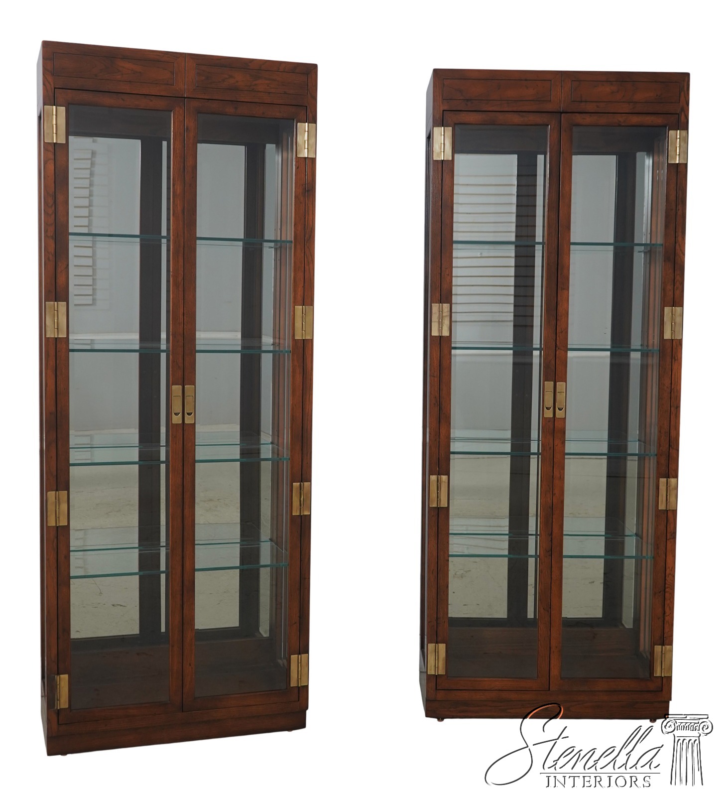 70044/45: Pair HENREDON Campaign Style Oak Curio Display Cabinets