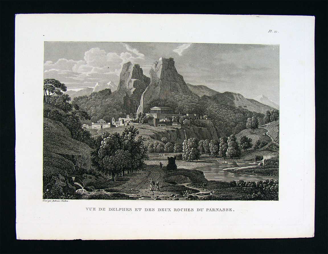 Description: It is an original antique copper engraved print with plate marks embossed around the margins. It is from L'Abbe Barthelemy's Voyage du Jeune Anacharsis en Grece, published in Paris by Chez Etienne Ledoux, 1822. A copy of the title page is included. The map was engraved by Ambroise Tardieu, whose name appears in the bottom left margin. It is not mounted nor matted, being sold as a single sheet as seen in the first pic. Overall, A Beautiful Map that will frame up nicely.