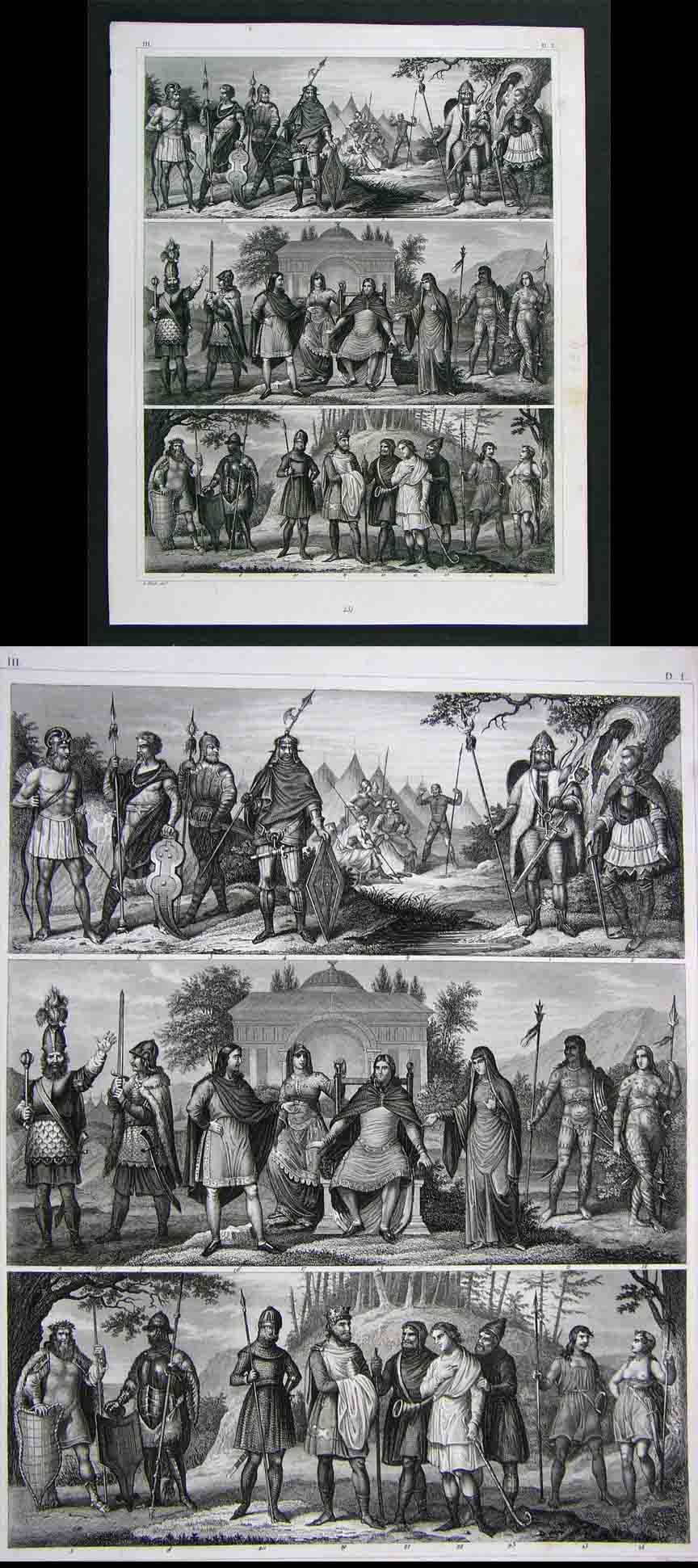 Description: It is an original antique steel engraved plate or sheet of historical views over 160 years old. It was published in an 1849 edition of the Bilder Atlas (Leipzig: Brodhaus, 1849). Included is a facsimile copy of the title page with date for authenticity. These plates were designed under the direction of Johann Georg Heck as stated on the title page. The sheet is not mounted nor matted, being sold as a single sheet as seen in the first pic. Nice rich tone! An interesting printing showing the primary ancient tribes of Europe including the Britons, Swedes, Goths, Franks, Vandals, Anglo Saxons, Danes.