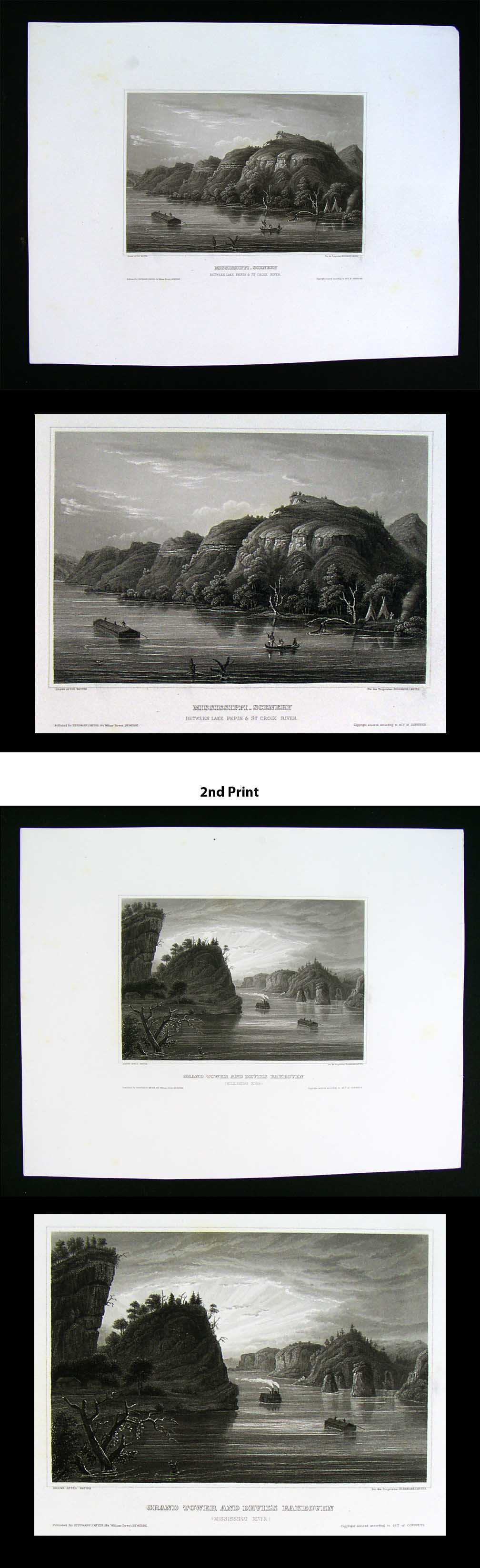 Description: The listing is for two original antique engraved print over 150 years old. It is from Herrmann Meyer's Universum America Views and Cities (New York, 1850). Meyer's name is in the bottom margin. Overall, a nice pair of prints, uncolored as issued, of the early days of Mississippi River with steamboats, Flatboat barges and Indians in a Canoe.