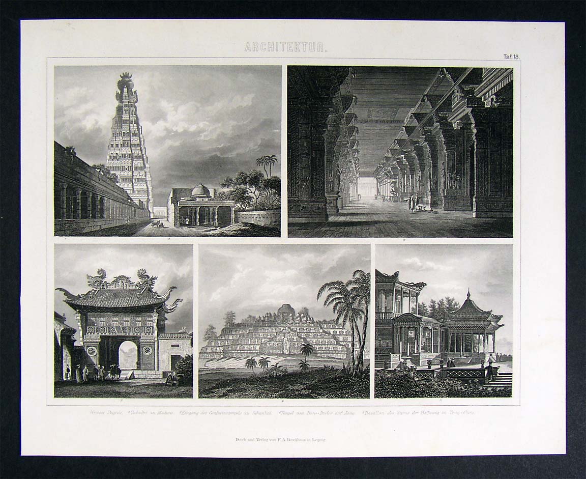 1874 Architecture Print Asia Buddha Temple China Pagoda