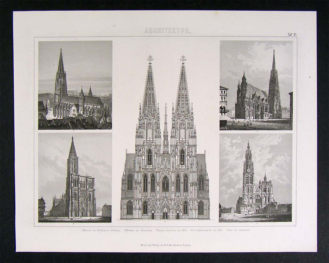 1874 Architecture Print Cathedral Koln Vienna Strasburg