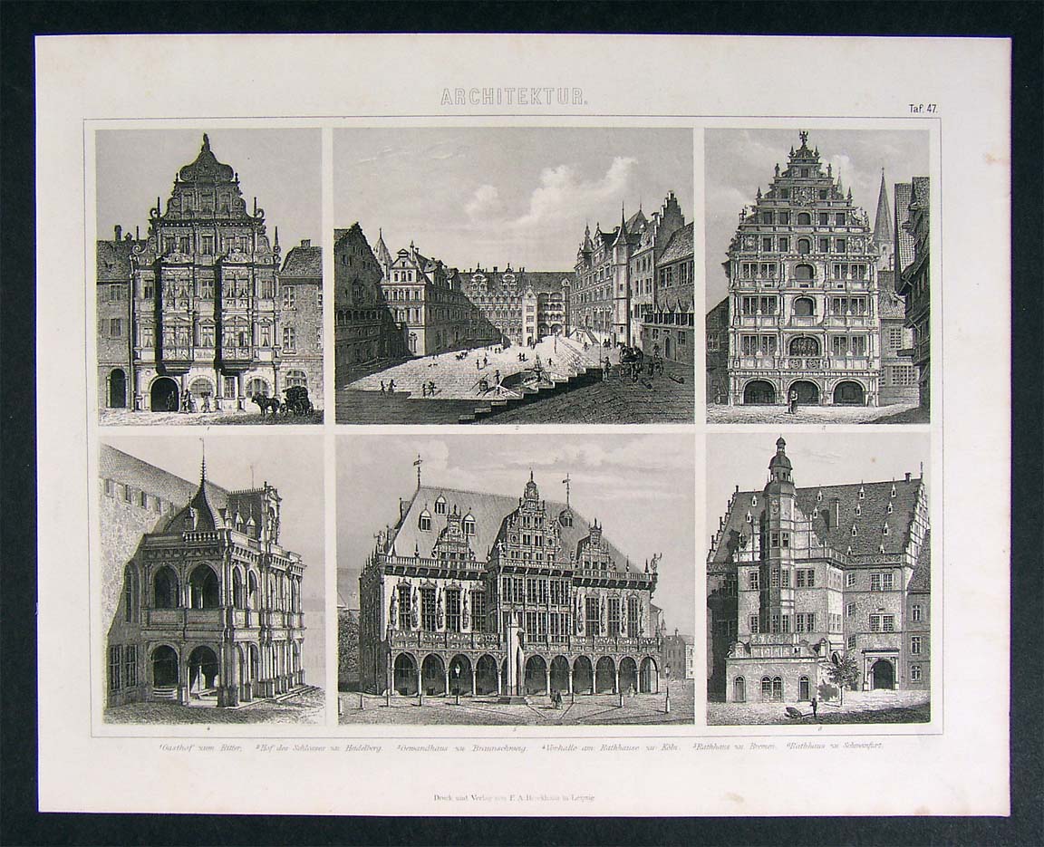 1874 Architecture Print Heidelberg Bremen Braunschweig
