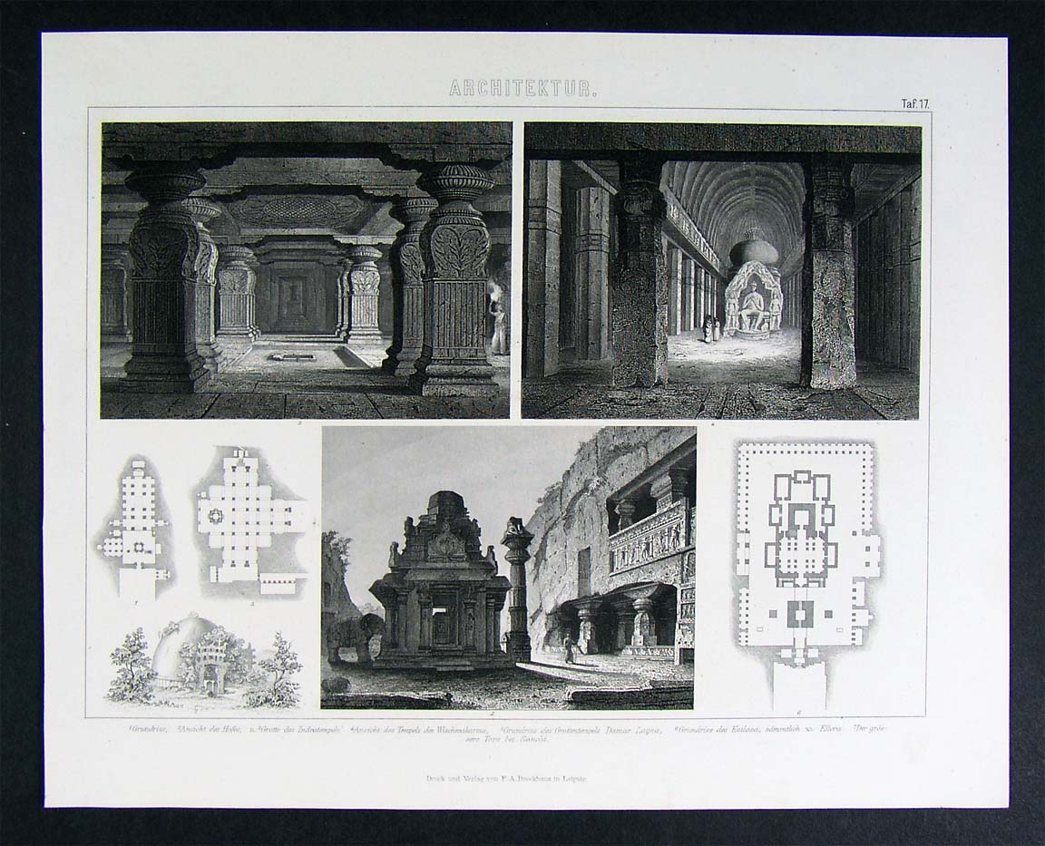 1874 Architecture Print Hindu India Indra Ellora Temple