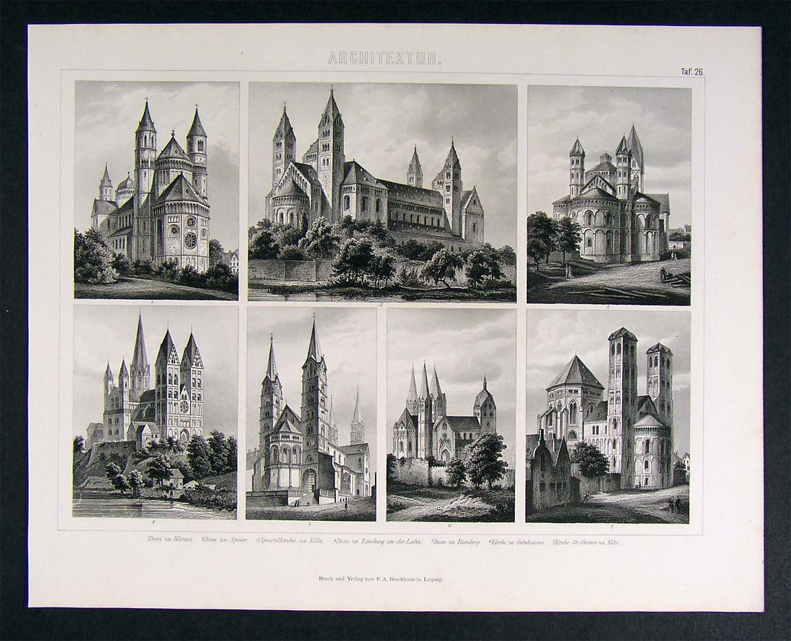 1874 Architecture Print Koln Limburg Speyer Worms Cath.