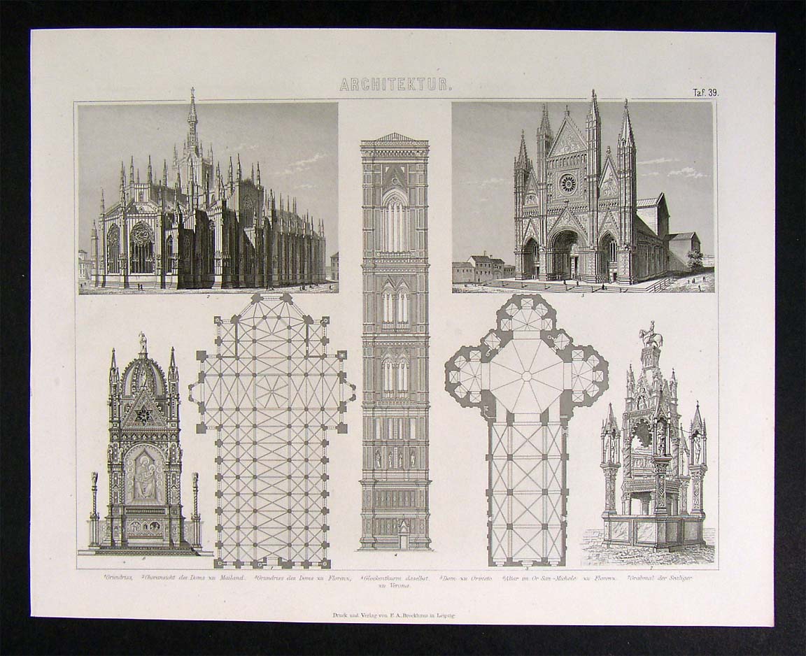 1874 Architecture Print Milan Orvieto Cahtedral Verona