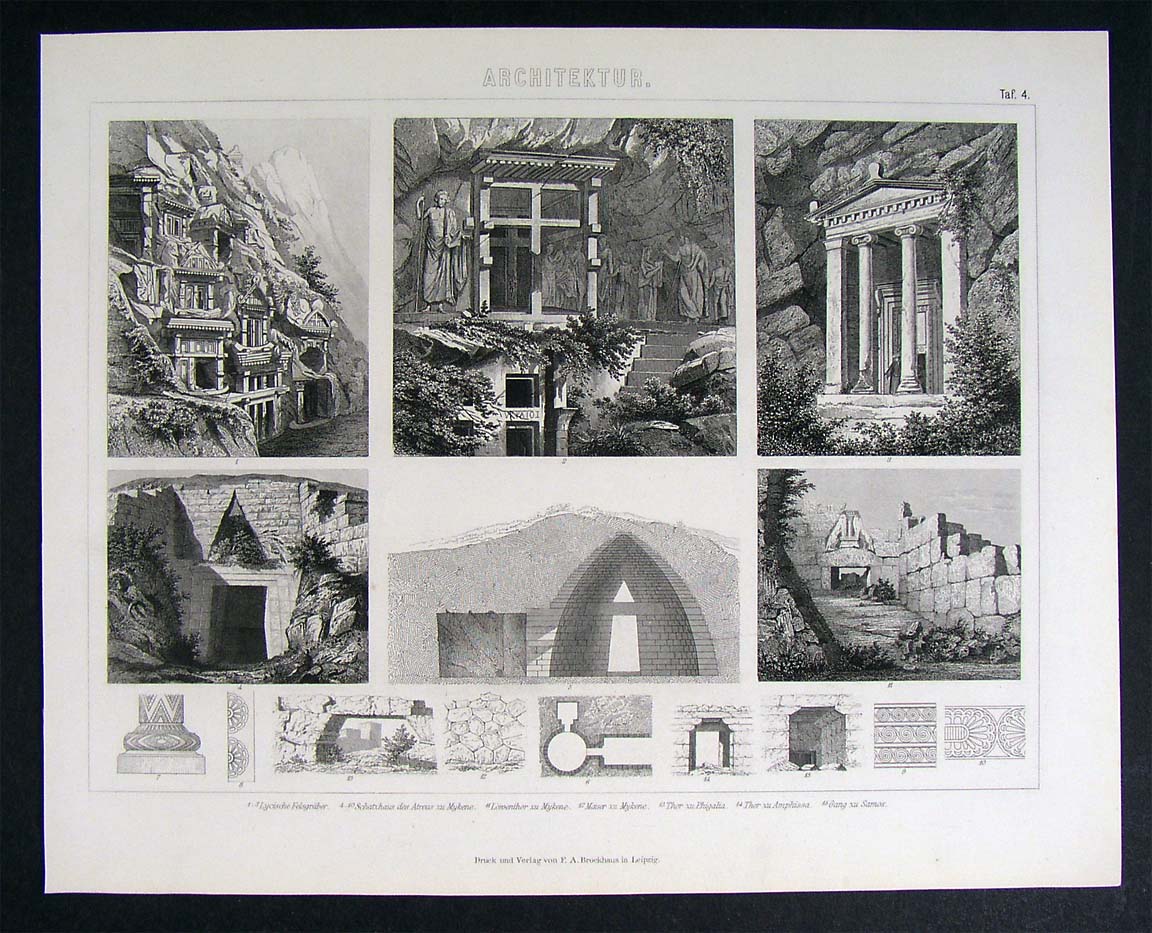 1874 Architecture Print Mycenae Greek Lion Gate Tombs
