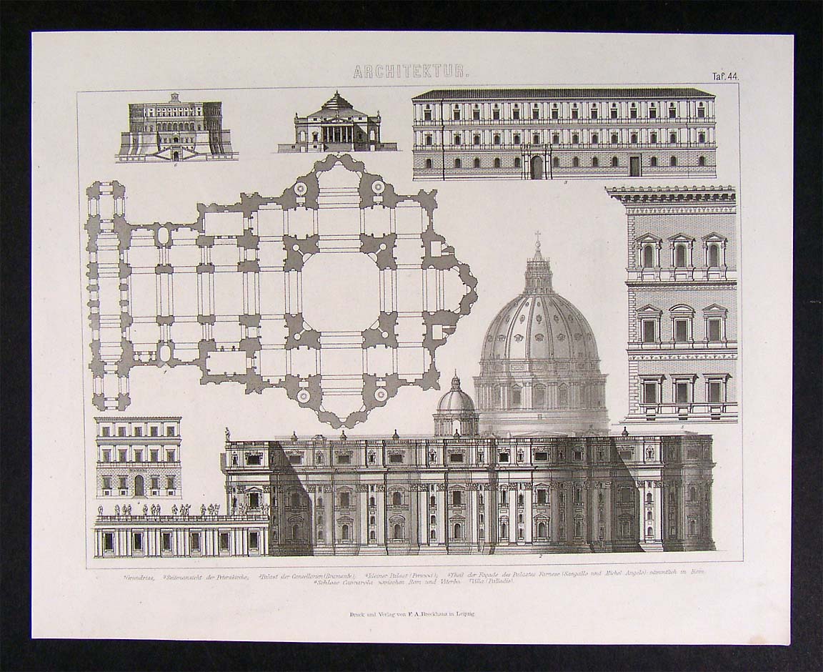 1874 Architecture Print - St. Peter's Cathedral - Rome