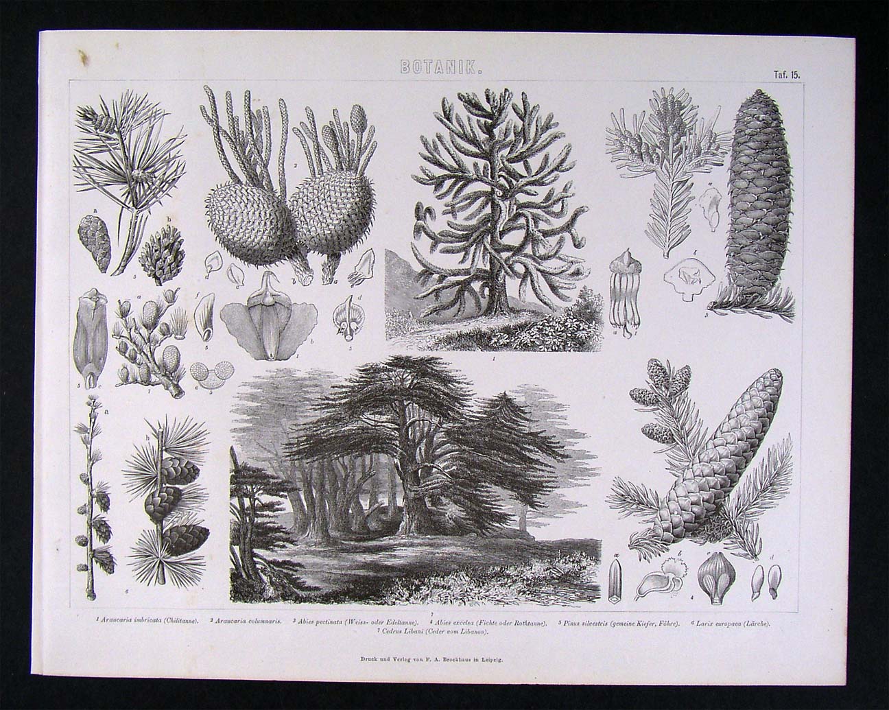 1874 Botanical Print - Pine Tree Cones Needles Pinus