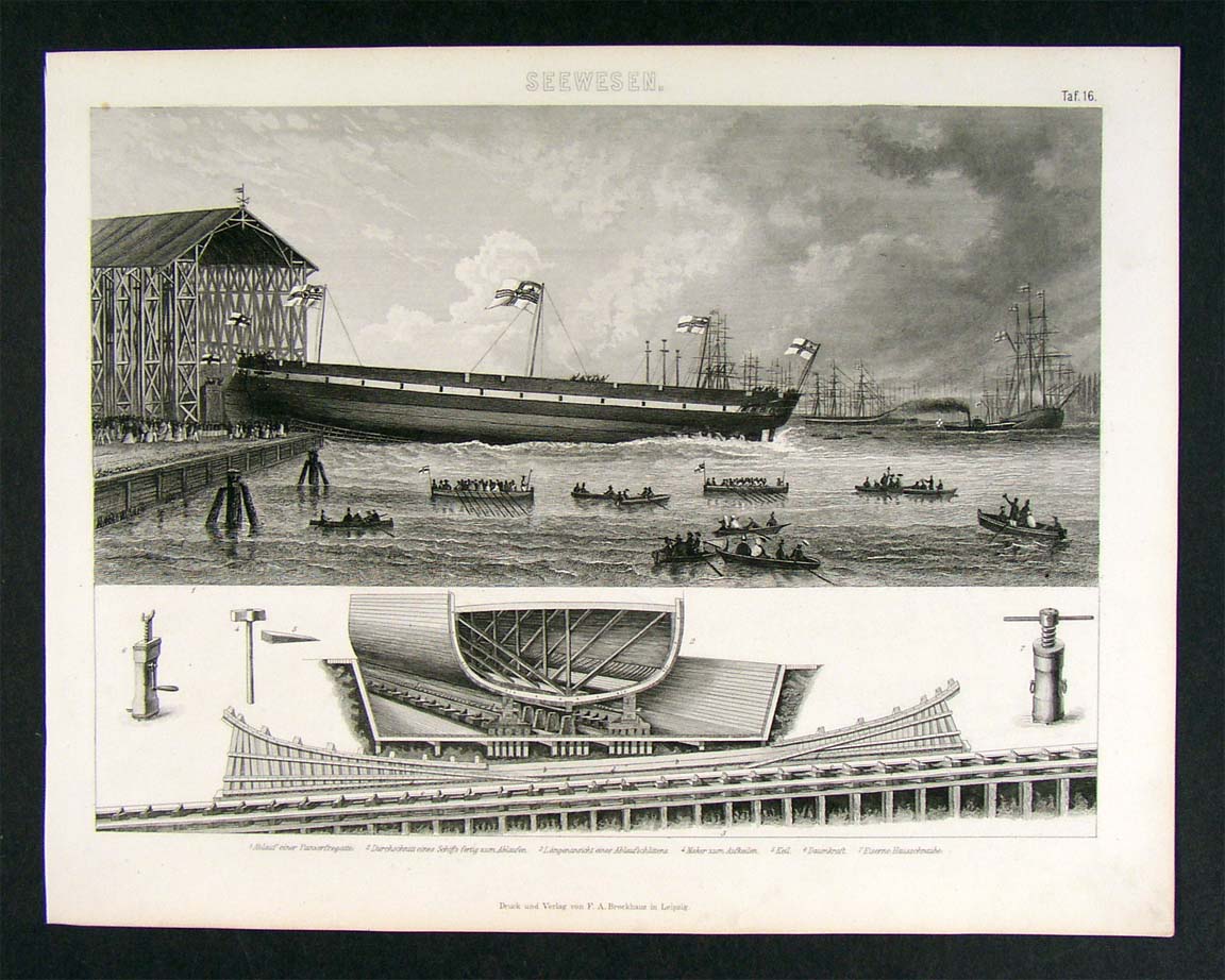 1874 Naval Print Launching Panzer Frigate German Ship