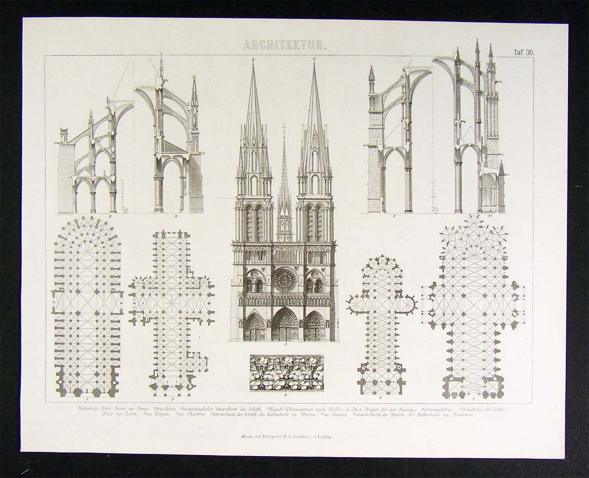 1874 Print Cahtedral Architecture France Chartres Paris