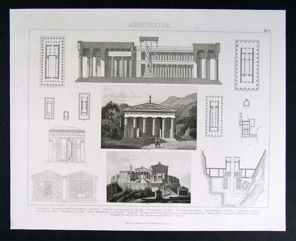 1874 Print Greek Acropolis Parthenon Athen Oympia Templ