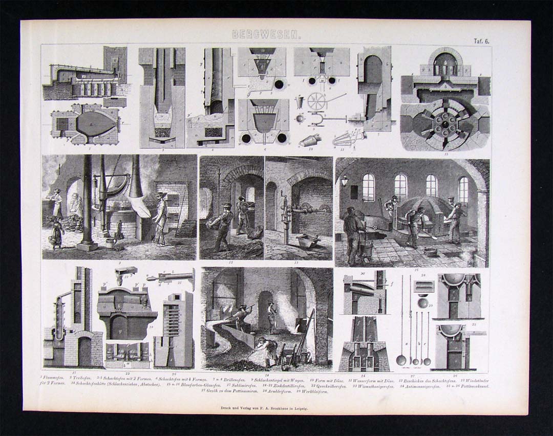 1874 Print - Mining Foundary Furnaces Tools Ovens Mine