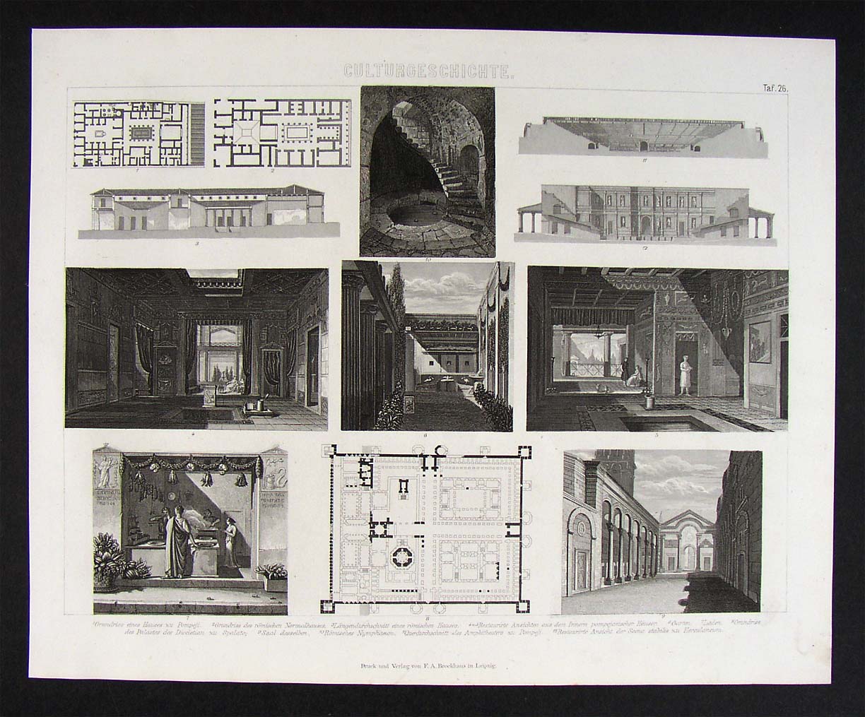 1874 Print - Roman Architecture of Pompeii Herculaneum