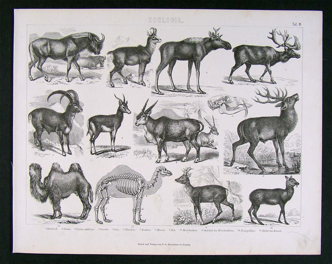 Description: It is an authentic antique steel engraved book plate print on paper over 135 years old. It is from the German Bilder Atlas, considered the most extensive lexicon of natural and scientific images of the 19th century, published in Leipzig by Brockhaus, 1874. A facsimile copy of the title page is included. It is being sold as a single sheet from the Atlas, not matted nor framed, as seen in the pic.