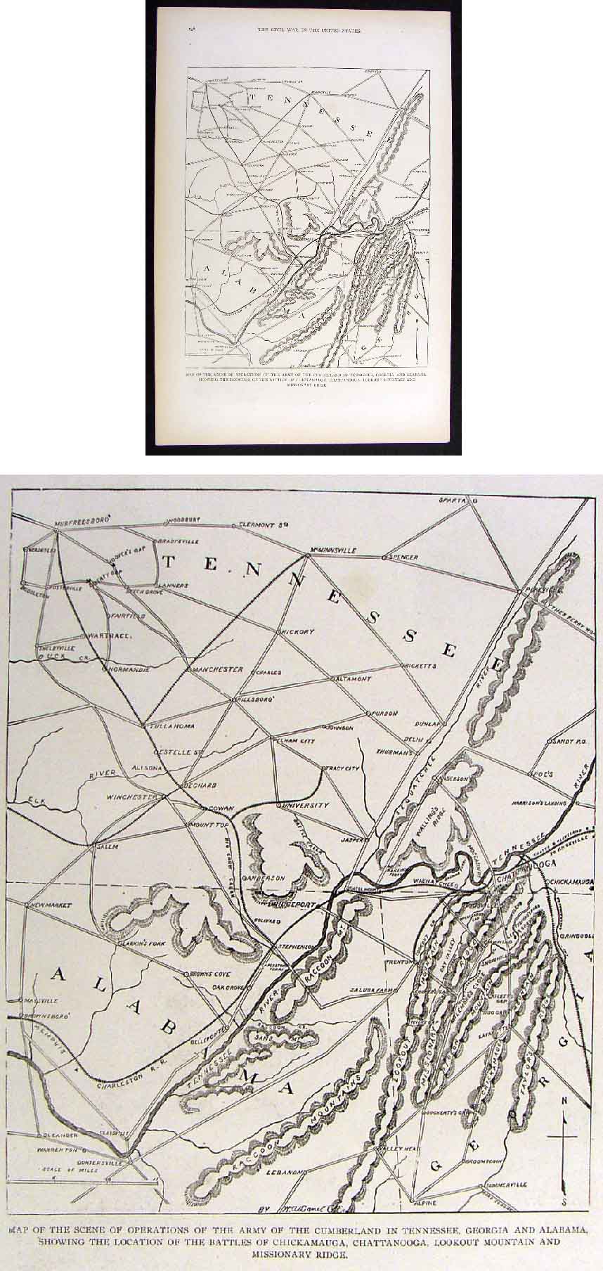 Title: Map of the Scene of Operations of the Army of the Cumberland in Tennessee, Georgia and Alabama showing the Location of the Battles of Chickamauga, Chattanooga, Lookout Mountain and Missionary Ridge.