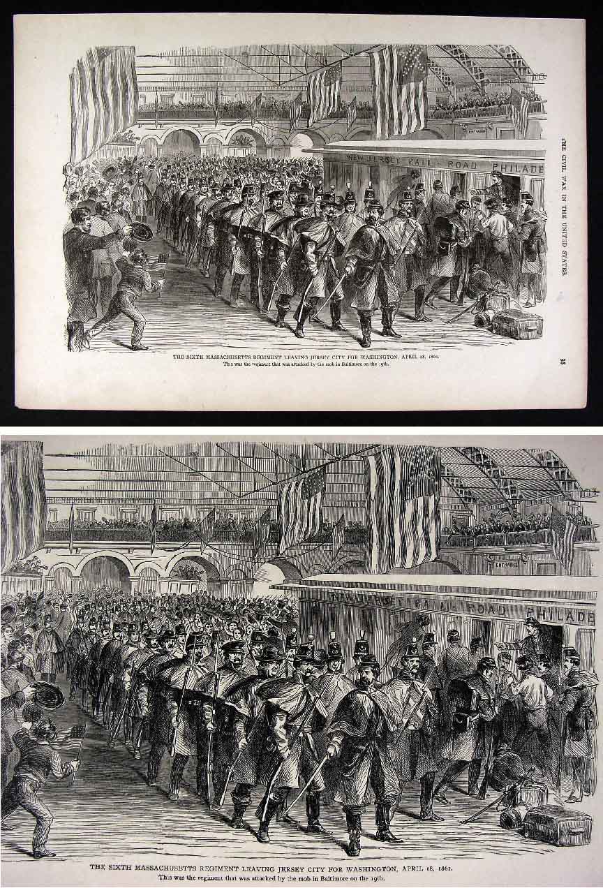 Title: The Sixth Massachusetts Regiment leaving Jersey City for Washington, April 18, 1861..
