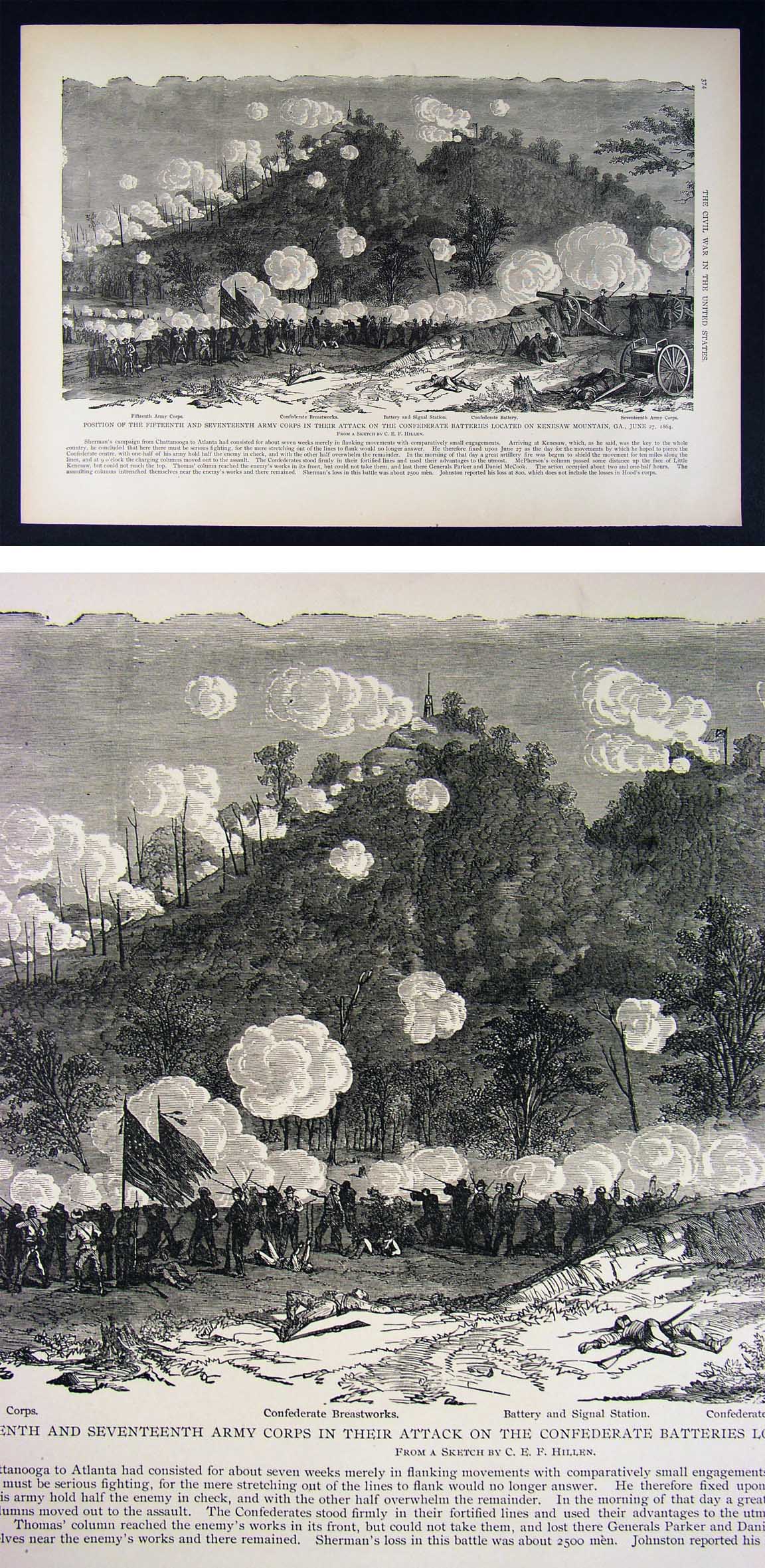 Description: It is an authentic 115 year old Antique Woodcut Print from Frank Leslie's Illustrated History of the Civil War (New York, c. 1890). Frank Leslie was perhaps best known for his documentation of the Civil War in his Illustrated Weekly Newspaper that chronicled the war. The best of these illustrations were reissued in combined volumes and histories after the war. He sent artists to the battle fields to sketch the events, which were then brought back to his printing company where they were cleaned up and turned into illustrations, cut onto wood blocks, often requiring several blocks for the larger prints as in this case. The print is not mounted, matted nor framed being sold as a single sheet as seen in the first pic. There are smaller illustrations and text on the reverse. Overall, a very nicely preserved print that would frame up well!