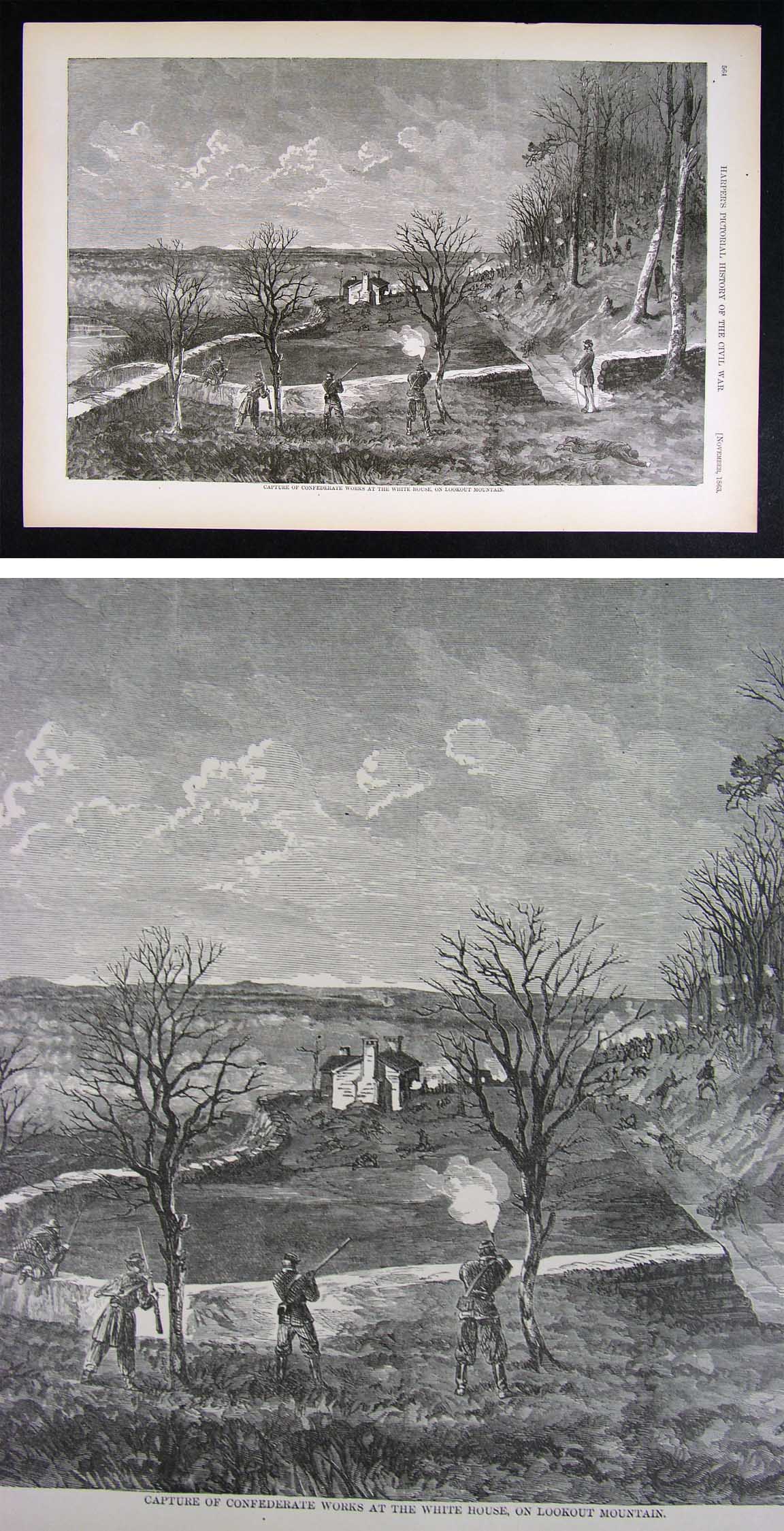 Description: It is an authentic antique Woodcut Print approximately 145 years old. It is from the first edition of Harper's Pictorial History of the Civil War, which was published by McDonnell Bros., Chicago, Ill., part one was published in 1866 and part II in 1868. With the first part completed in 1866, it was one of the first works to put into perspective the account of the Great Rebellion, complete with woodcut illustrations, most of which were drawn on the spot by such artists as Winslow Homer, Granville Perkins, Livingston Hopkins and others for Harper's Weekly which chronicled the Civil War on a weekly basis. A copy of the title page is included for authenticity. The print is not mounted, matted nor framed being sold as a single sheet as seen in the first pic. There are often smaller illustrations and text on the reverse. Overall, a very nicely preserved print that would frame up well!
