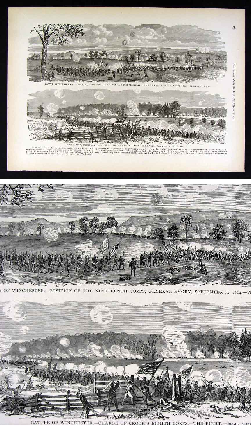 Title: Battle of Winchester (top) Position of the 19th Corps, General Emory, Sept. 19, 1864. (bottom) Charge of Crook's Eighth Corps - The Right.