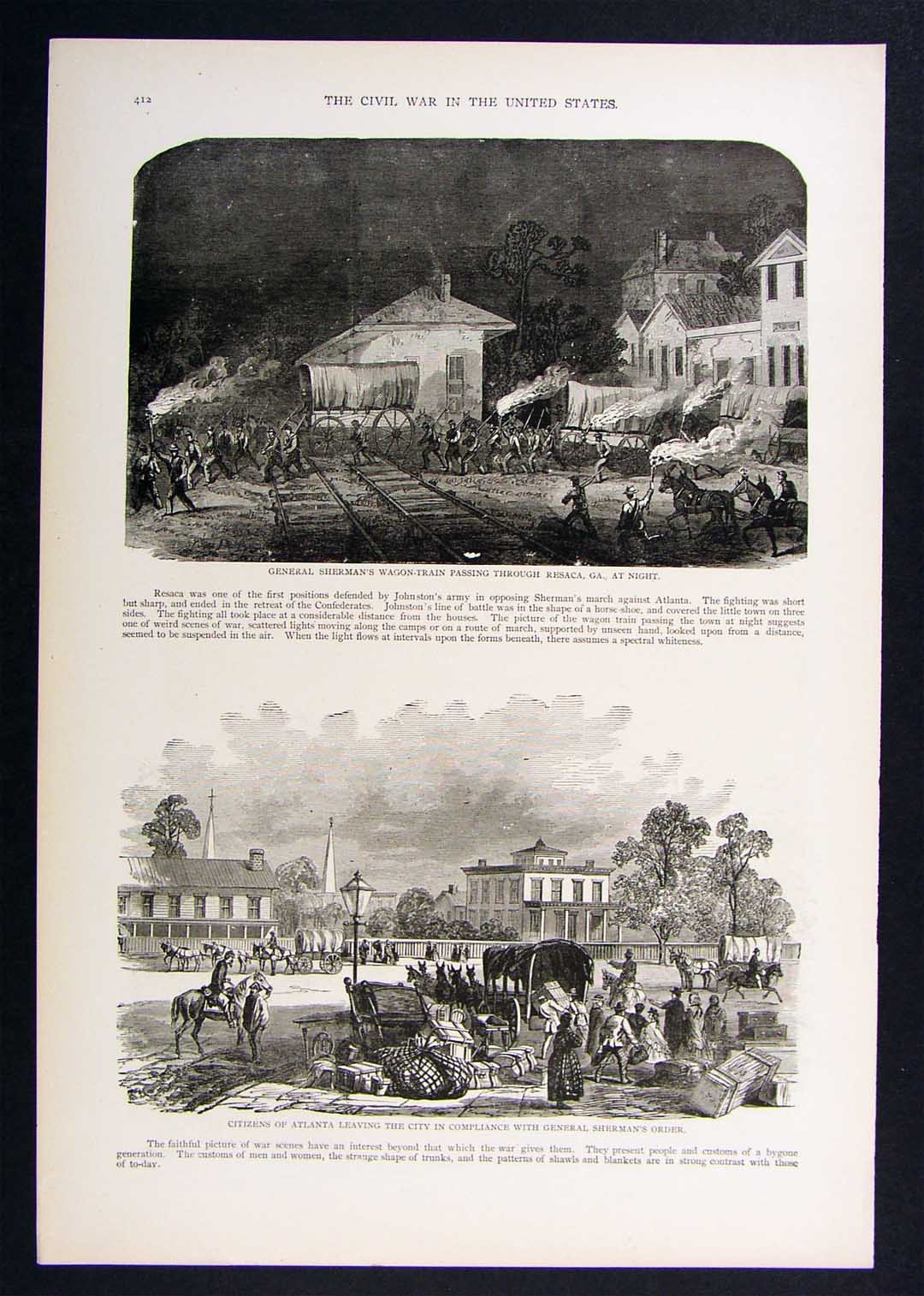 Description: It is an authentic 115 year old Antique Woodcut Print from Frank Leslie's Illustrated History of the Civil War (New York, c. 1890). Frank Leslie was perhaps best known for his documentation of the Civil War in his Illustrated Weekly Newspaper that chronicled the war. The best of these illustrations were reissued in combined volumes and histories after the war. He sent artists to the battle fields to sketch the events, which were then brought back to his printing company where they were cleaned up and turned into illustrations, cut onto wood blocks, often requiring several blocks for the larger prints as in this case. The print is not mounted, matted nor framed being sold as a single sheet as seen in the first pic. On the reverse are a couple of half page size prints of Federal Forces destroying the Macon Railroad at Jonesboro, Ga and US Soldier's tearing down shattered buildings in Atlanta. Overall, a very nicely preserved print that would frame up well!