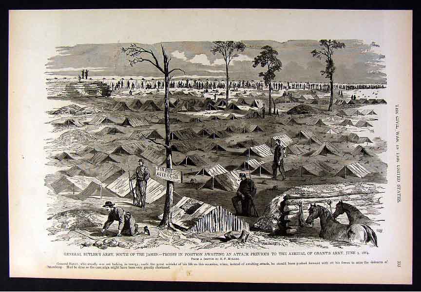 Title: General Butler's Army, South of the James. - Troops in Position Awaiting an Attack Previous to the Arrival of Grant's Army, June 3, 1864.