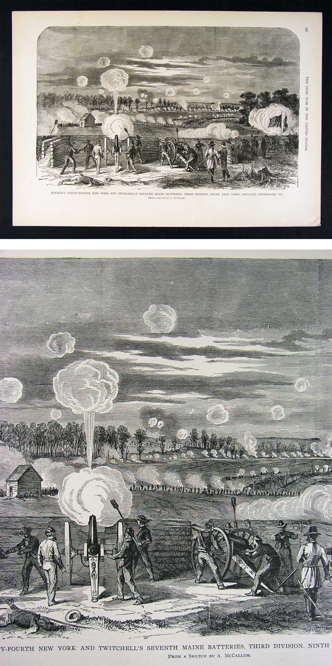 Description: It is an authentic 115 year old Antique Woodcut Print from Frank Leslie's Illustrated History of the Civil War (New York, c. 1890). Frank Leslie was perhaps best known for his documentation of the Civil War in his Illustrated Weekly Newspaper that chronicled the war. The best of these illustrations were reissued in combined volumes and histories after the war. He sent artists to the battle fields to sketch the events, which were then brought back to his printing company where they were cleaned up and turned into illustrations, cut onto wood blocks, often requiring several blocks for the larger prints as in this case. The print is not mounted, matted nor framed being sold as a single sheet as seen in the first pic. On the reverse are a couple of half page long panoramic views of Burnside's charge and Confereate earthworks at Petersburg. Overall, a very nicely preserved print that would frame up well!