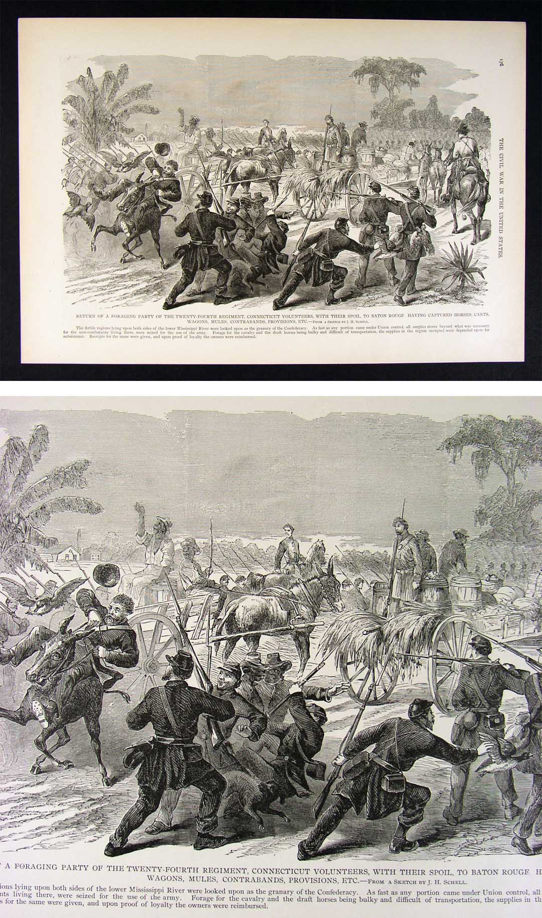 Description: It is an authentic 115 year old Antique Woodcut Print from Frank Leslie's Illustrated History of the Civil War (New York, c. 1890). Frank Leslie was perhaps best known for his documentation of the Civil War in his Illustrated Weekly Newspaper that chronicled the war. The best of these illustrations were reissued in combined volumes and histories after the war. He sent artists to the battle fields to sketch the events, which were then brought back to his printing company where they were cleaned up and turned into illustrations, cut onto wood blocks, often requiring several blocks for the larger prints as in this case. The print is not mounted, matted nor framed being sold as a single sheet as seen in the first pic. There are smaller illustrations and text on the reverse. Overall, a very nicely preserved print that would frame up well!