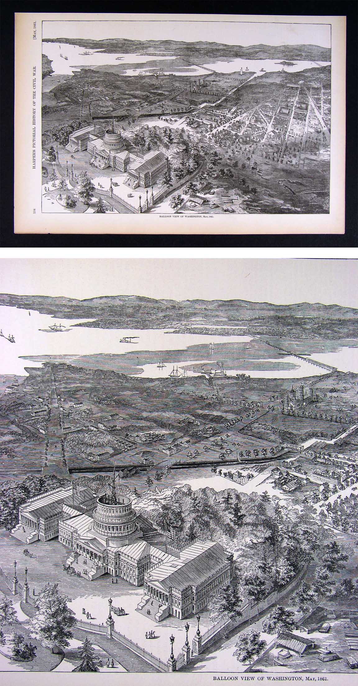 Description: It is an authentic antique Woodcut Print approximately 145 years old. It is from the first edition of Harper's Pictorial History of the Civil War, which was published by McDonnell Bros., Chicago, Ill., part one was published in 1866 and part II in 1868. With the first part completed in 1866, it was one of the first works to put into perspective the account of the Great Rebellion, complete with woodcut illustrations, most of which were drawn on the spot by such artists as Winslow Homer, Granville Perkins, Livingston Hopkins and others for Harper's Weekly which chronicled the Civil War on a weekly basis. A copy of the title page is included for authenticity. The print is not mounted, matted nor framed being sold as a single sheet as seen in the first pic. There is text on the reverse. Overall, a very nicely preserved print that would frame up well!