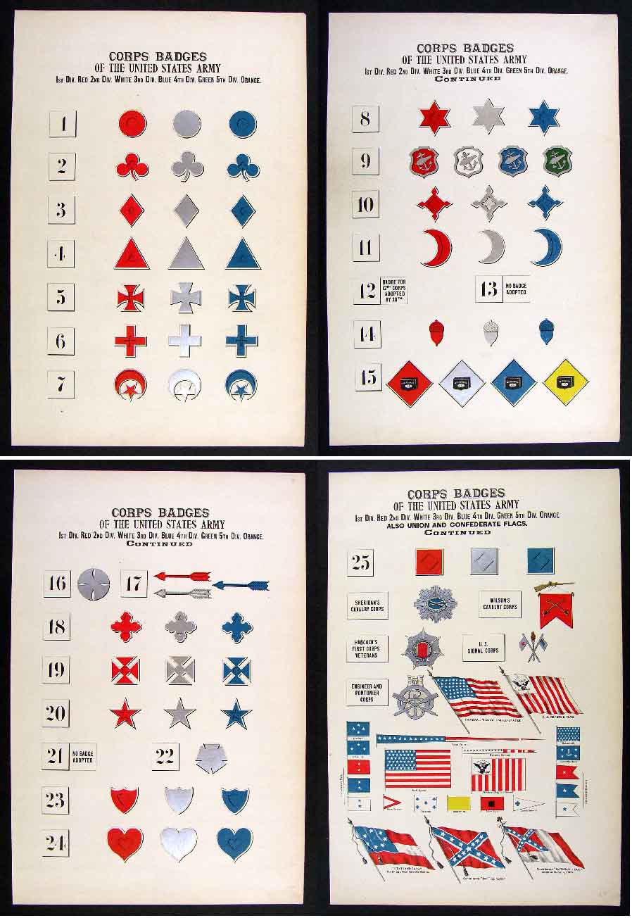 Title: Corps Badges of the United States Army... [A Nice Set on 4 Separate Sheets]