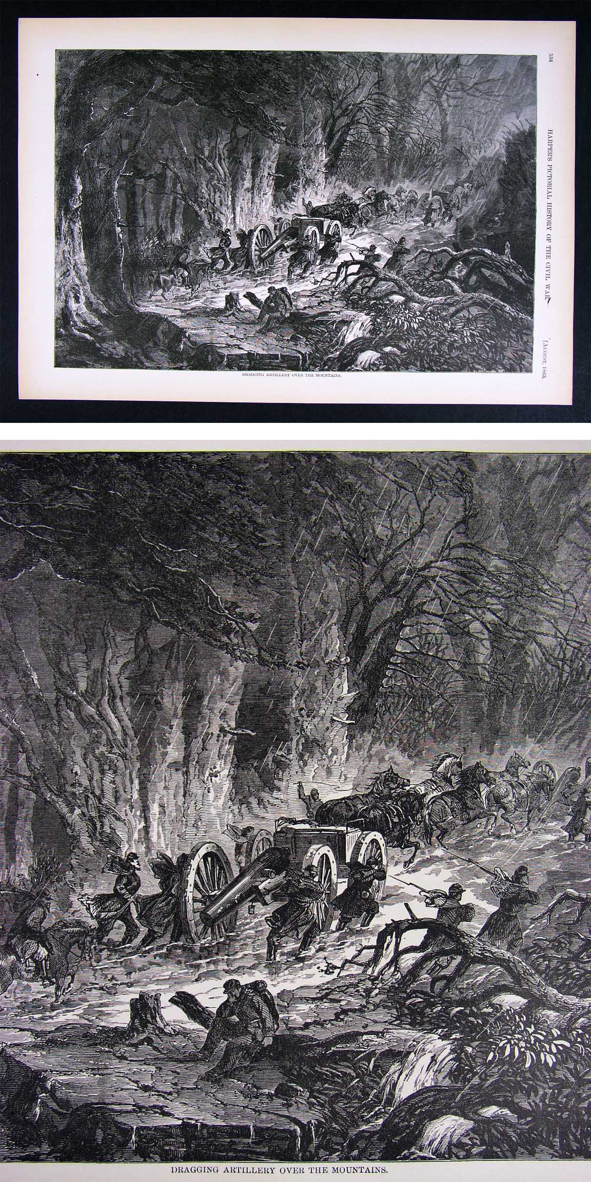 Harper's Civil War Print - Dragging Artillery Mountains