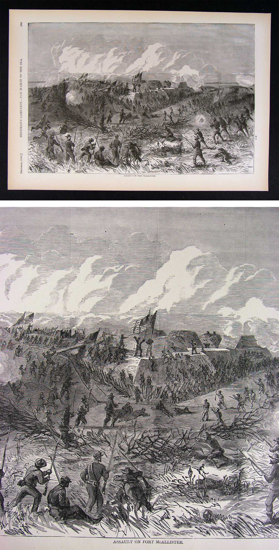 Description: It is an authentic antique Woodcut Print approximately 145 years old. It is from the first edition of Harper's Pictorial History of the Civil War, which was published by McDonnell Bros., Chicago, Ill., part one was published in 1866 and part II in 1868. With the first part completed in 1866, it was one of the first works to put into perspective the account of the Great Rebellion, complete with woodcut illustrations, most of which were drawn on the spot by such artists as Winslow Homer, Granville Perkins, Livingston Hopkins and others for Harper's Weekly which chronicled the Civil War on a weekly basis. A copy of the title page is included for authenticity. The print is not mounted, matted nor framed being sold as a single sheet as seen in the first pic. There is text on the reverse. Overall, a very nicely preserved print that would frame up well!